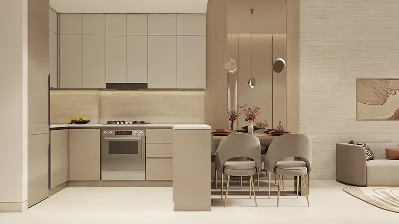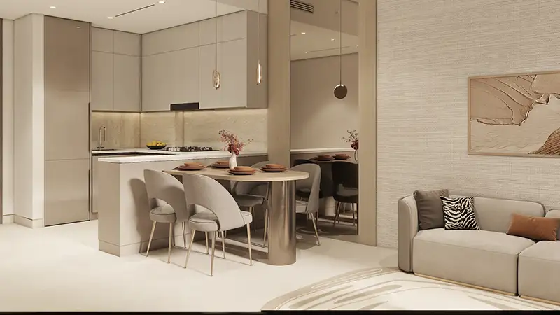Architecturally informed by a contemporary design philosophy which focuses on reducing closed spaces, increasing access to natural light, and augmenting the utility of residential areas. Connected with clear lines and modernized finish, the exterior of the building presents a style of clean lines and modern type of construction, whereas interiors are designed with emphasis on space utilization and the sense of harmony. Ample daylight is embraced by large windows; the spaces are pleasant and inviting, contributing to the spaciousness. Every home is designed with maximum attention to smooth flow between the living, dining and personal spaces, helping both to relax and work. Modern fixtures, high-quality materials, and soft texture also enhance the general experience of living and make this a sophisticated and user-friendly residential development in the Dubai market.