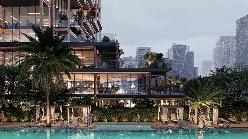 The master plan of The Symphony by Imtiaz Developments is an architectural composition that has been arranged around open green spaces, leisure, and residential facilities. The design philosophy of the development focuses on the concept of flow and each element of the development i.e. entrance lobby to the recreational area is linked up in a continuous and comfortable order. The property is surrounded by landscaped gardens, which favour well-being and natural tranquillity. Sensitive community design, such as children's playgrounds, running tracks, and rest points, has been adopted into the plan in order to integrate with the pedestrian environment. The formation is high-rise because it is part of an integrated lifestyle projected on the height of a mixed-use horizon that is to be reshaped in the liveliest environments of Dubai.