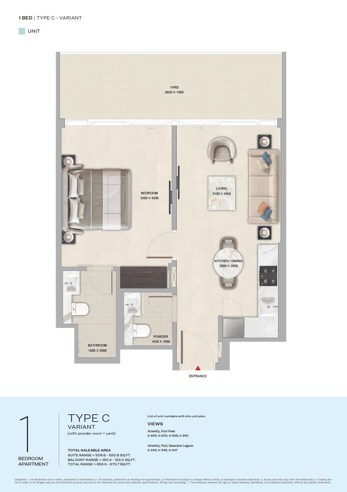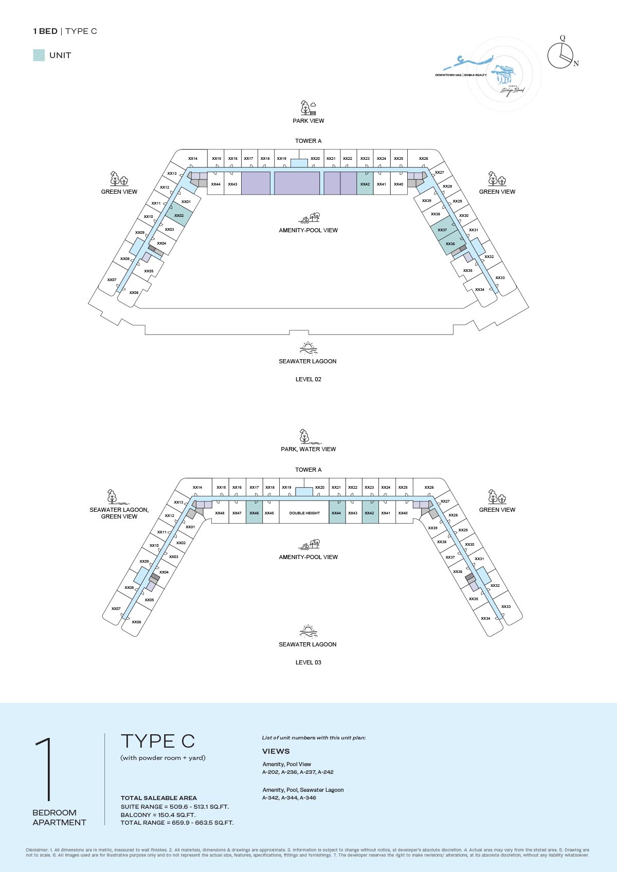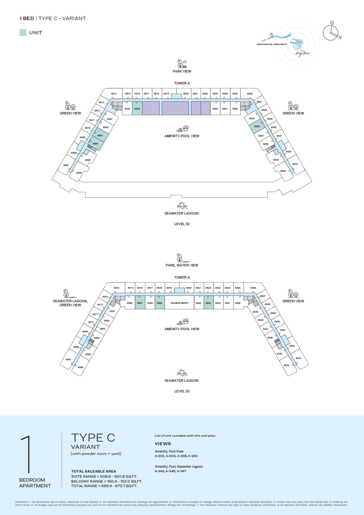 | Tower A | 1 Bedroom | Level 02 & 03 (Type C Variant) | 673.70 Sq Ft | Click Here |