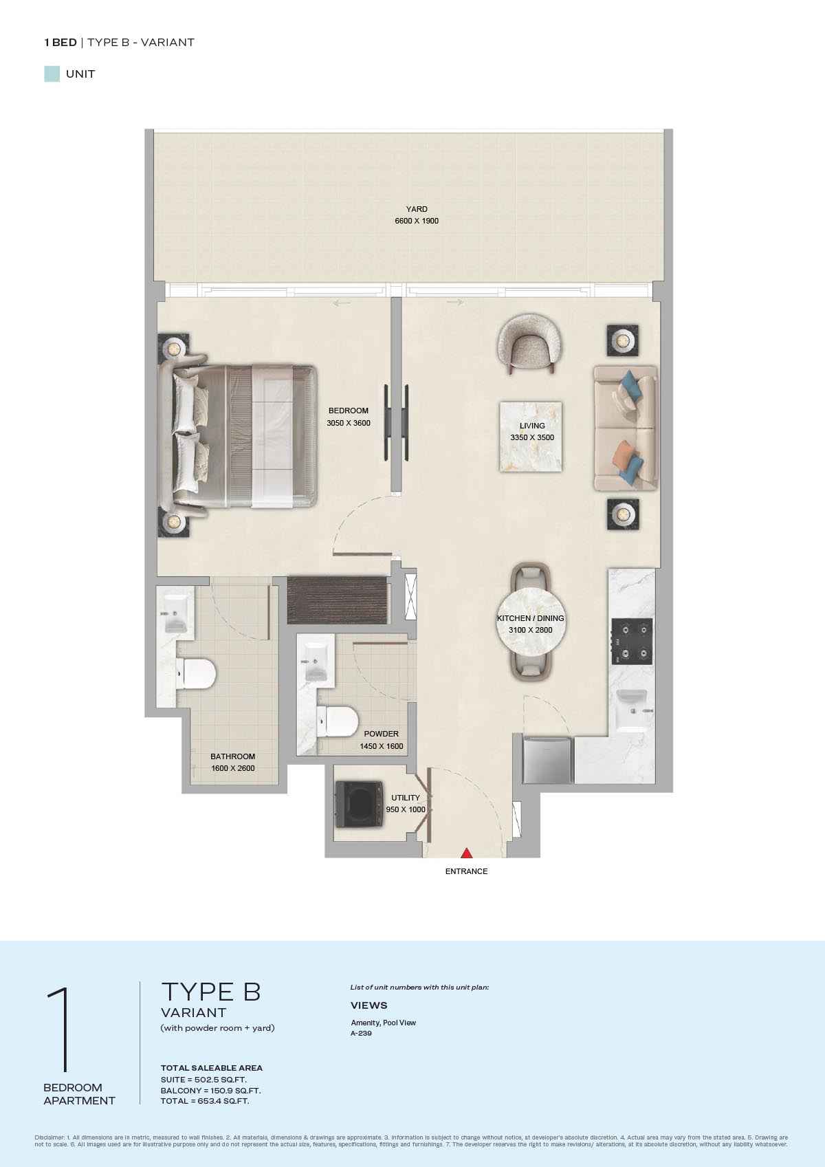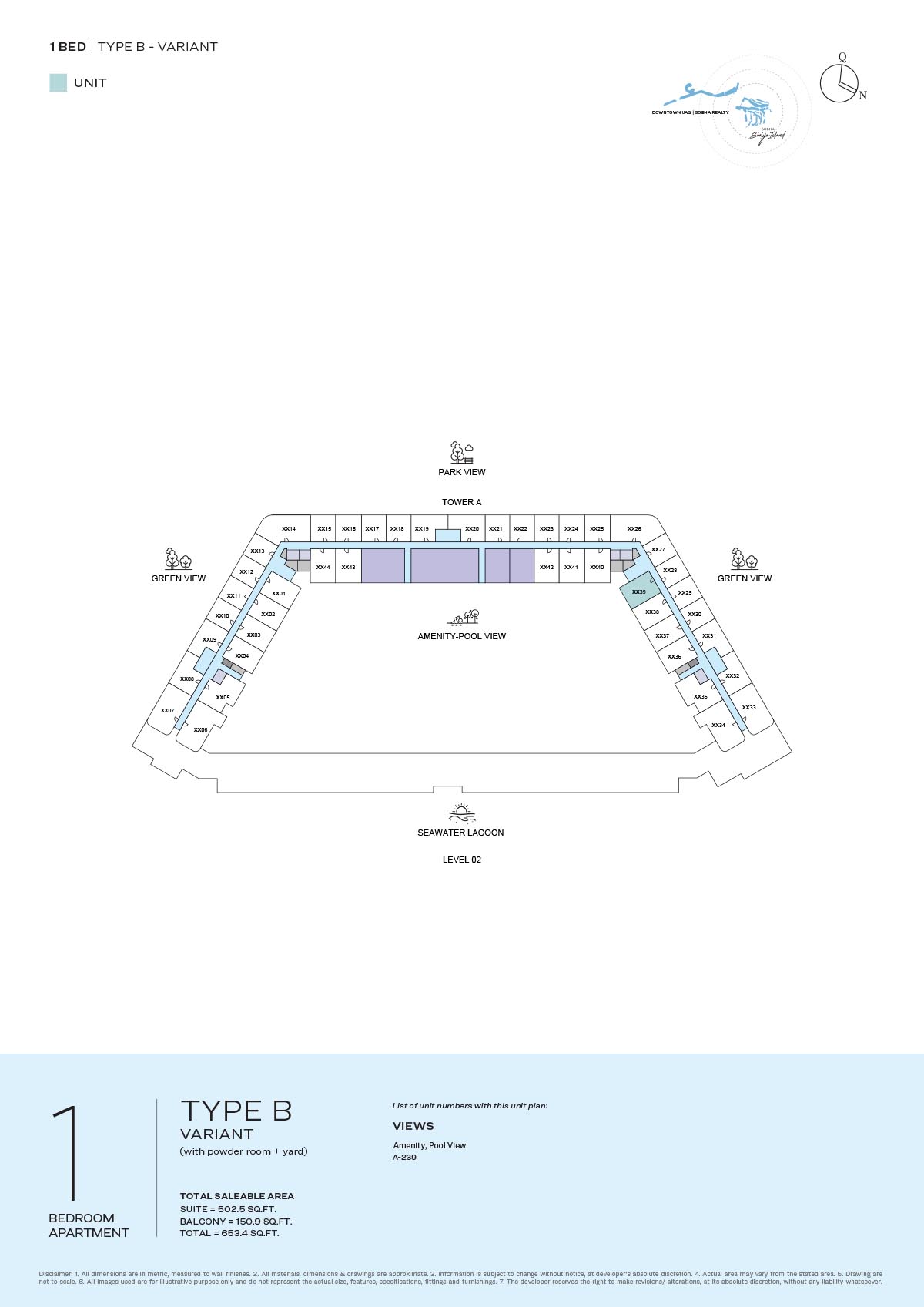 | Tower A | 1 Bedroom | Level 02 (Type B Variant) | 653.40 Sq Ft | Click Here |