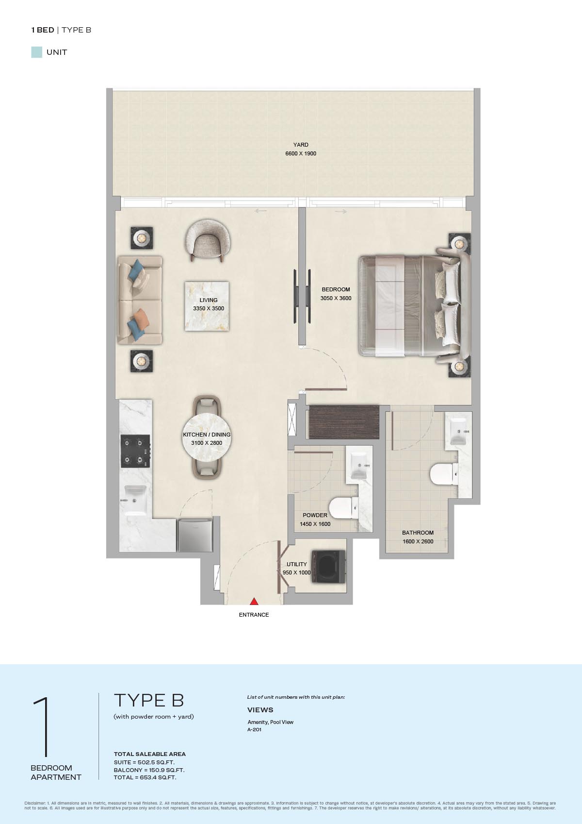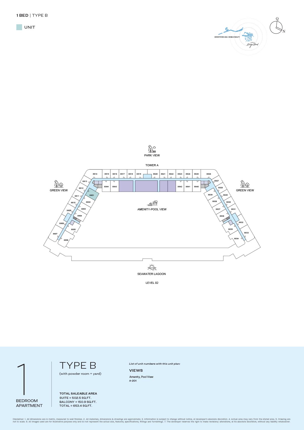 | Tower A | 1 Bedroom | Level 02 (Type B) | 653.40 Sq Ft | Click Here |