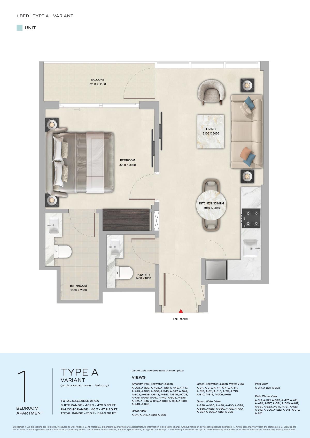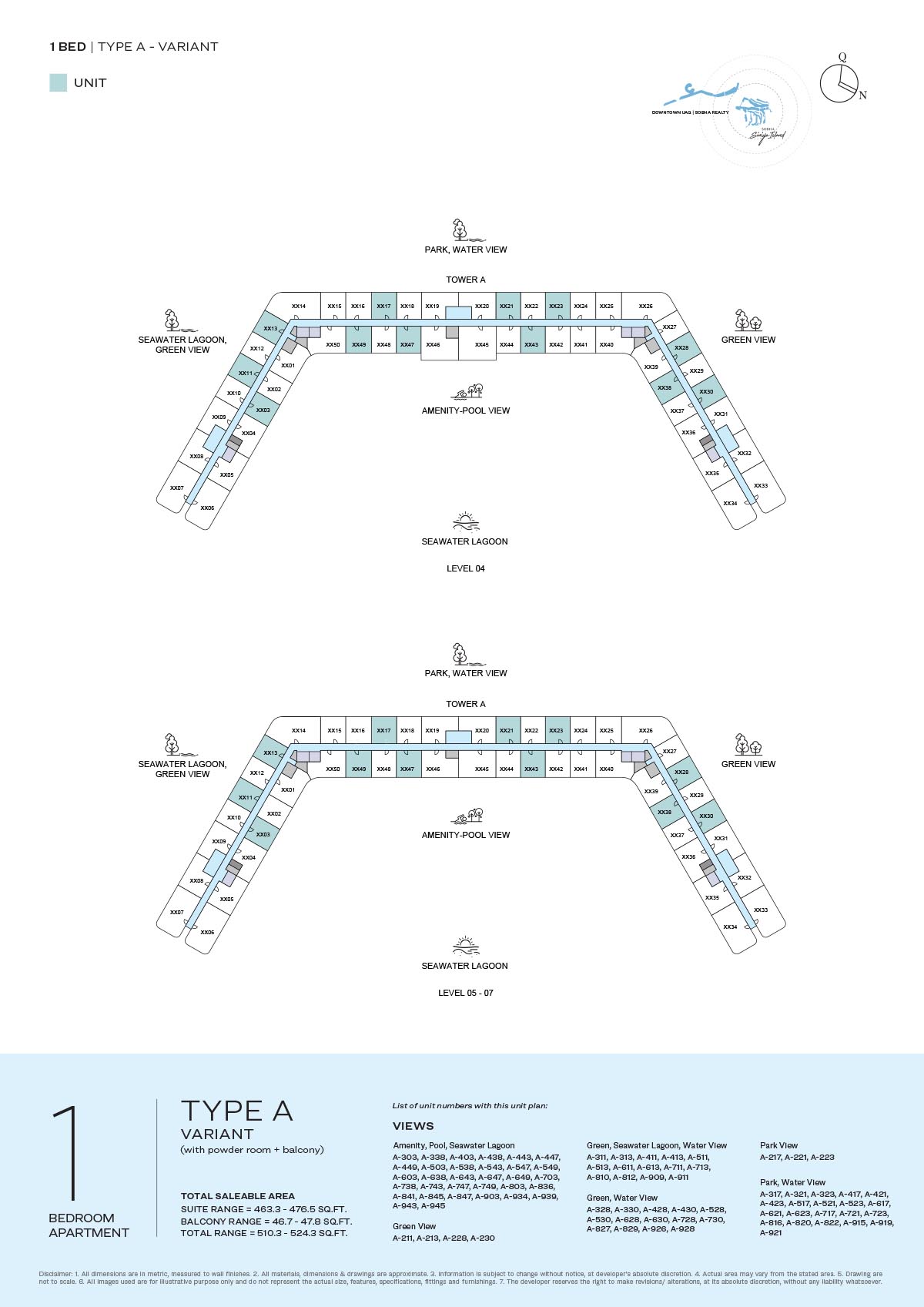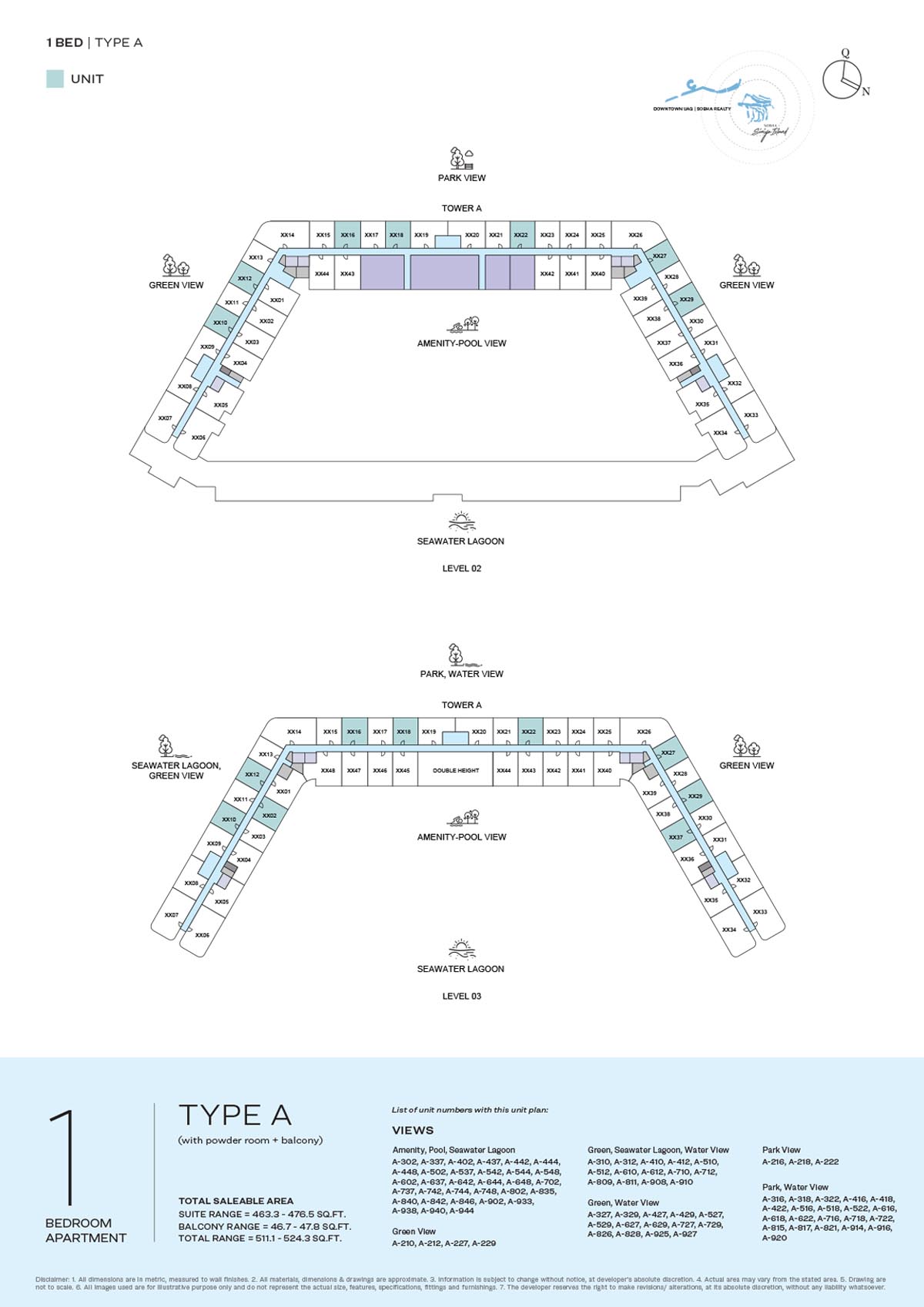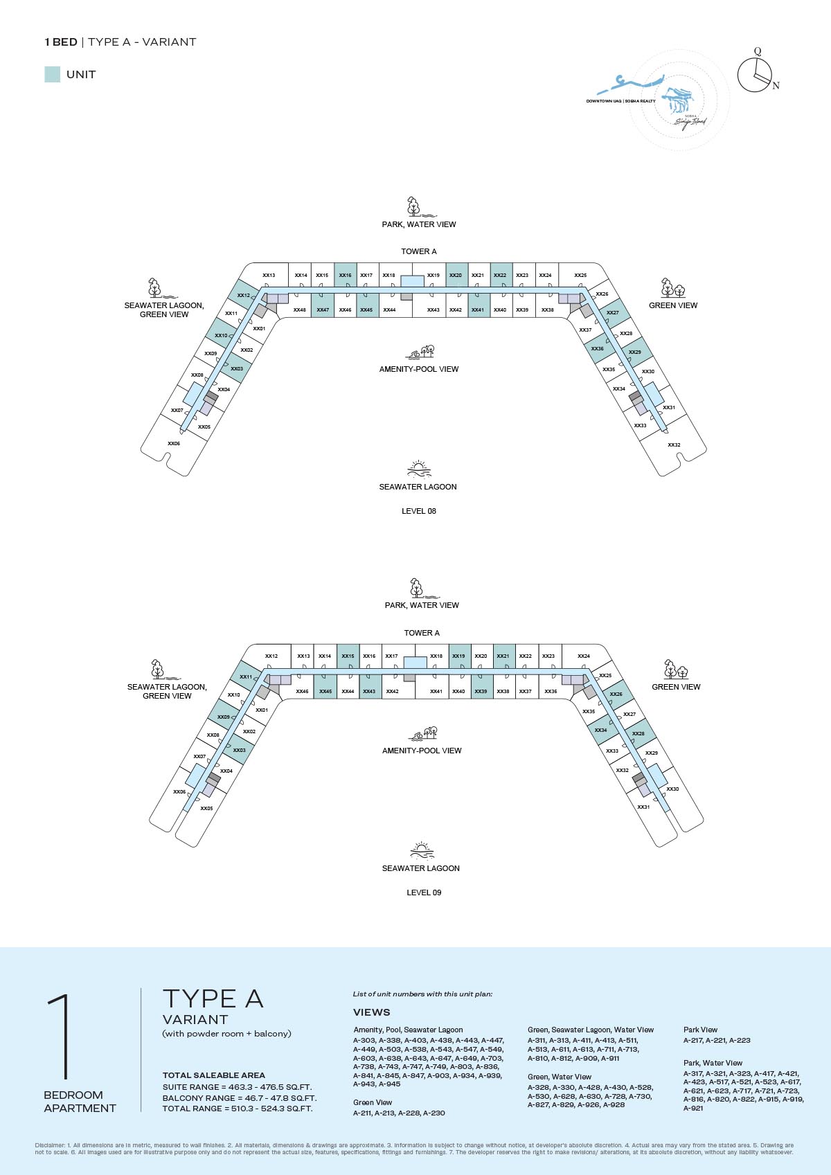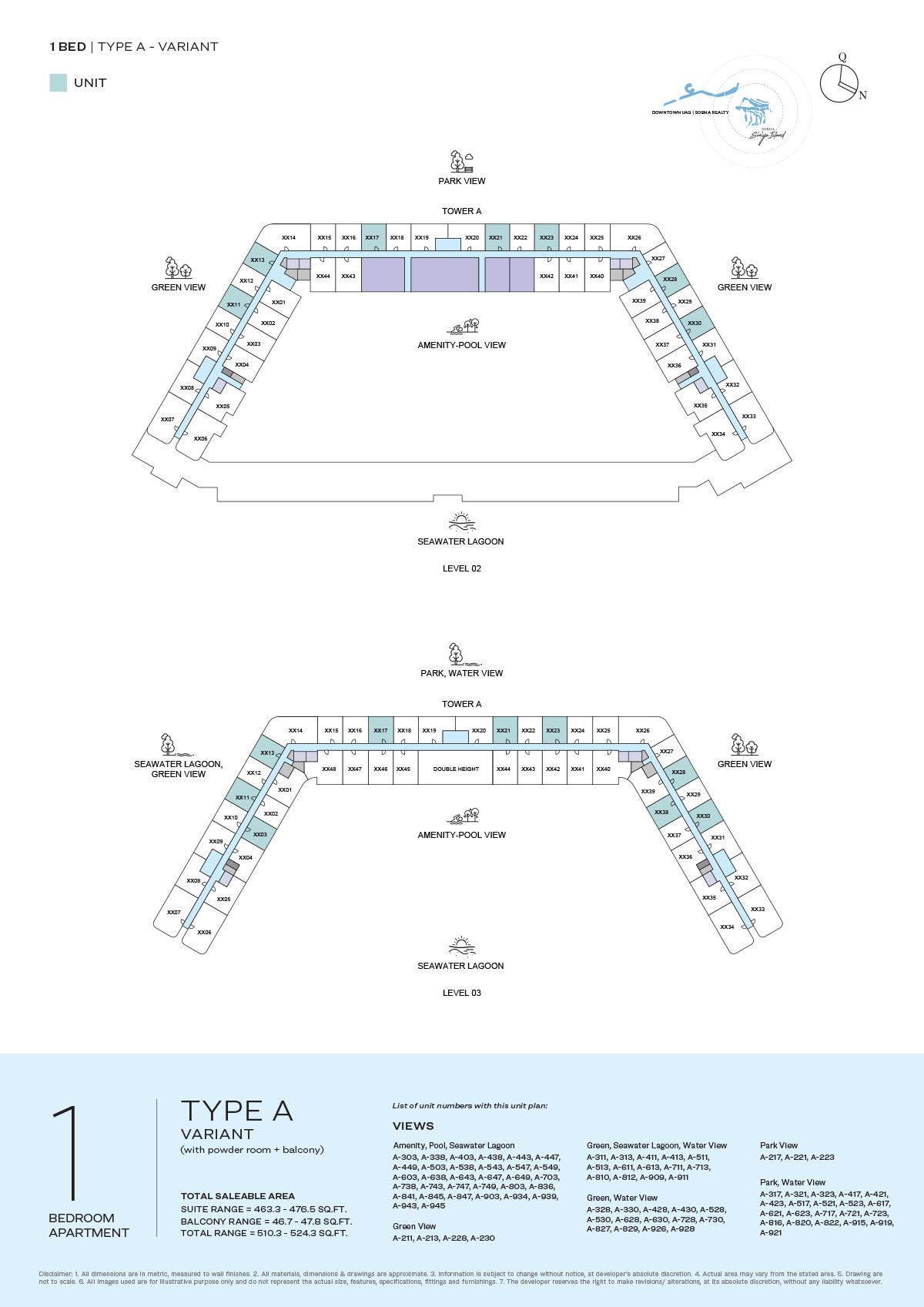 | Tower A | 1 Bedroom | Level 08 & 09 (Type A Variant) | 524.30 Sq Ft | Click Here |