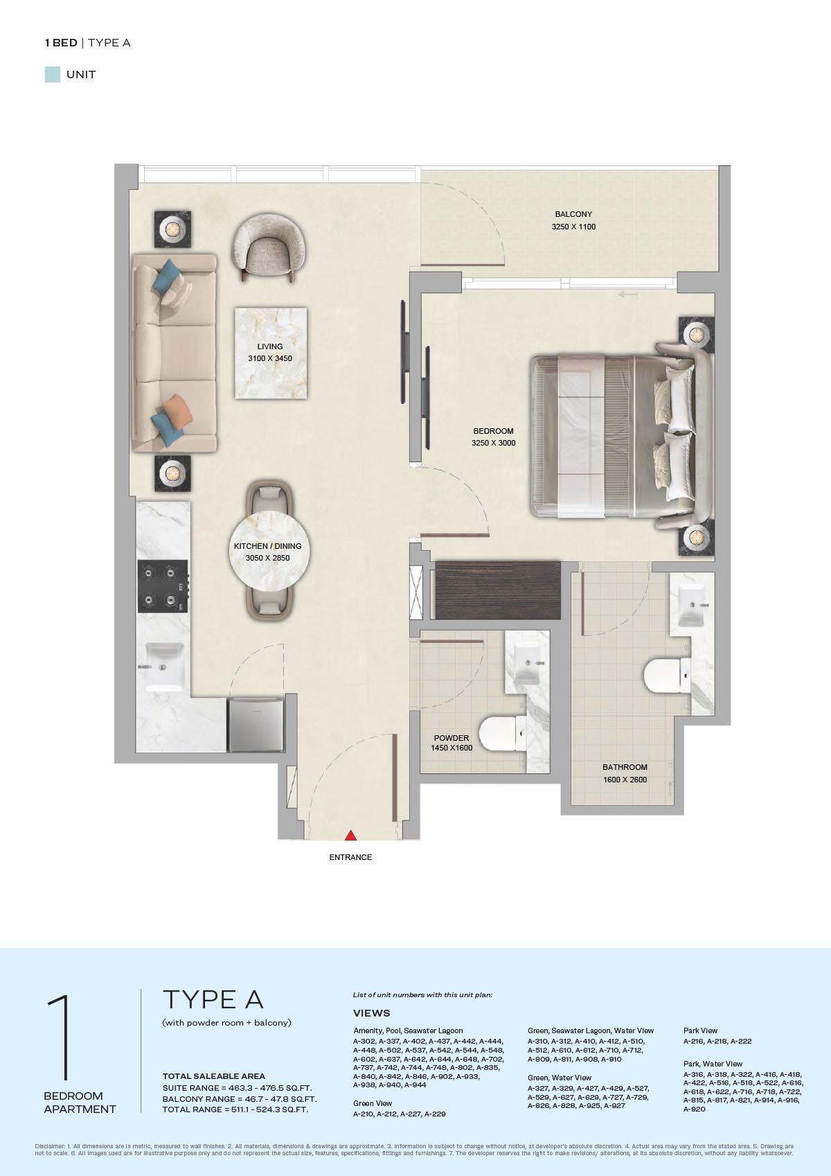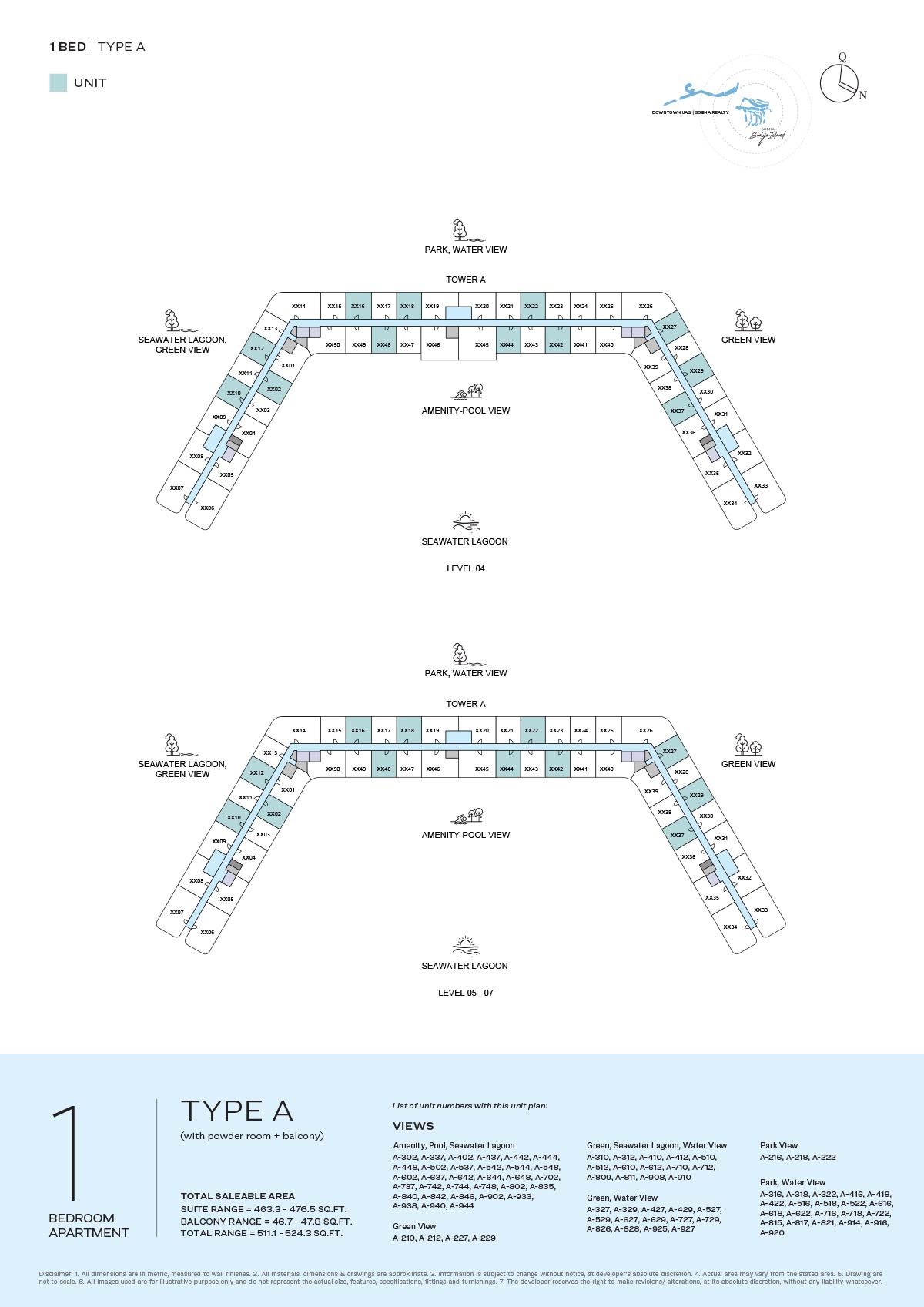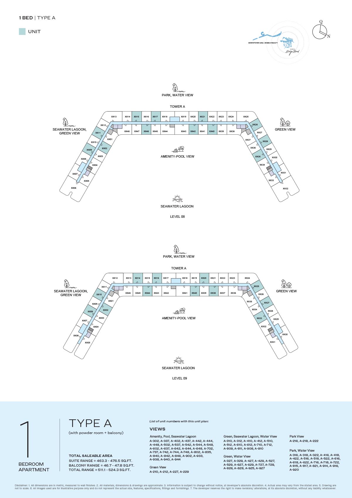 | Tower A | 1 Bedroom | Level 08 & 09 (Type A) | 524.30 Sq Ft | Click Here |