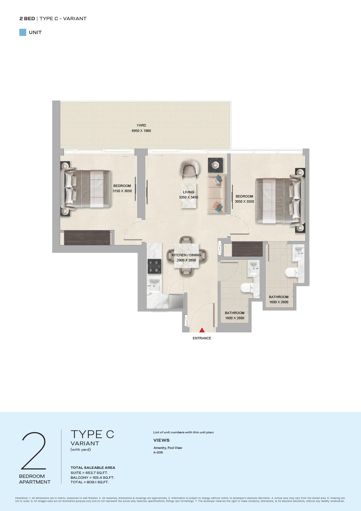 | Tower A | 2 Bedrooms | Level 02 (Type C Variant) | 809.10 Sq Ft | Click Here |