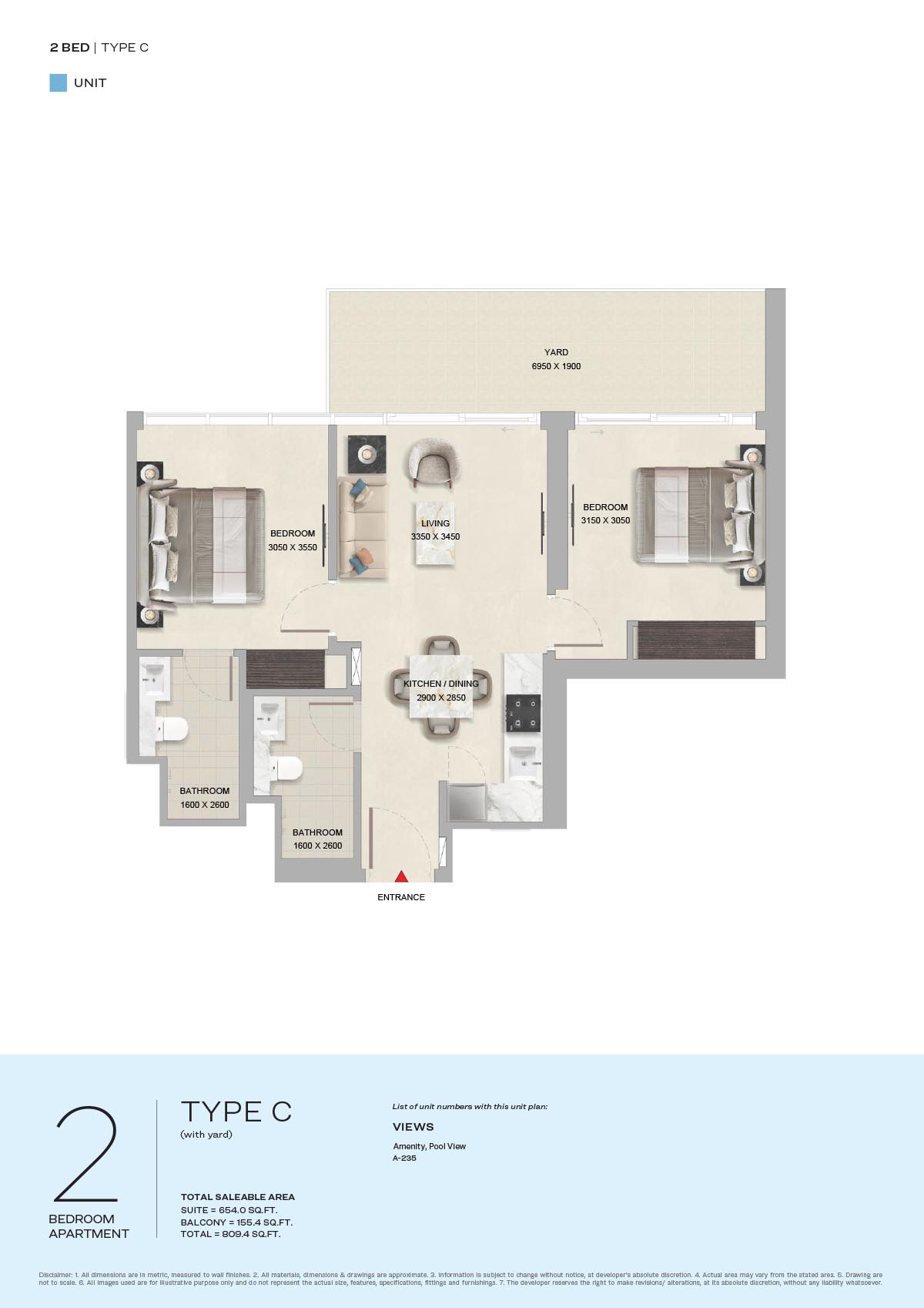 | Tower A | 2 Bedrooms | Level 02 (Type C) | 809.40 Sq Ft | Click Here |