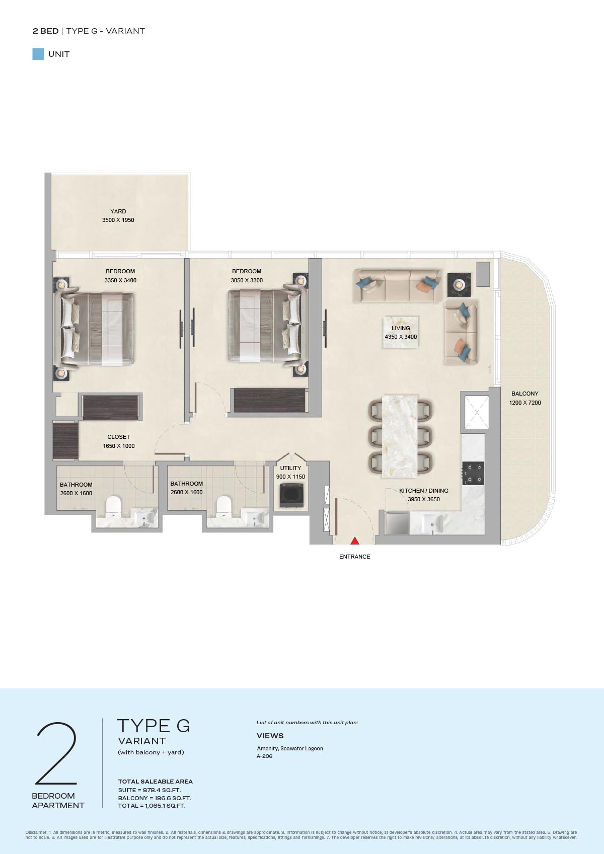 | Tower A | 2 Bedrooms | Level 02 (Type G Variant) | 1065.10 Sq Ft | Click Here |