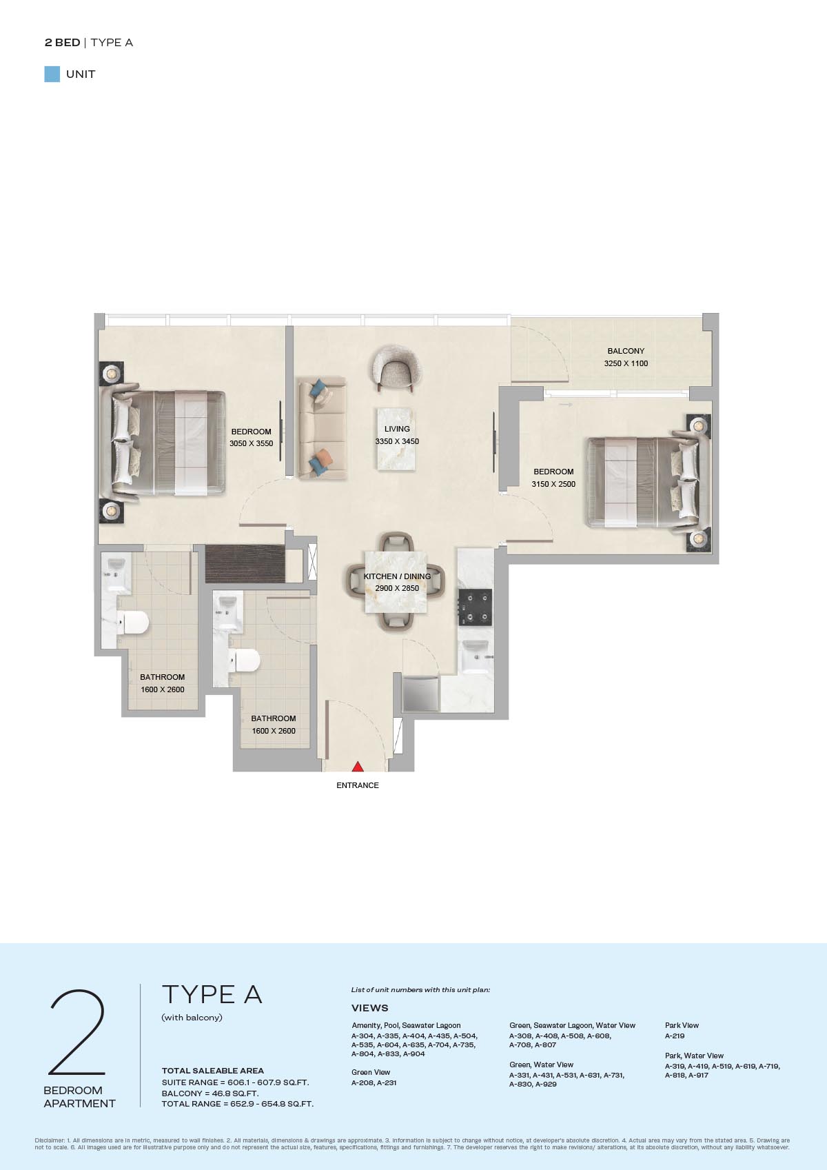 | Tower A | 2 Bedrooms | Typical Layout - Level 08 & 09 (Type A Variant) | 654.80 Sq Ft | Click Here |