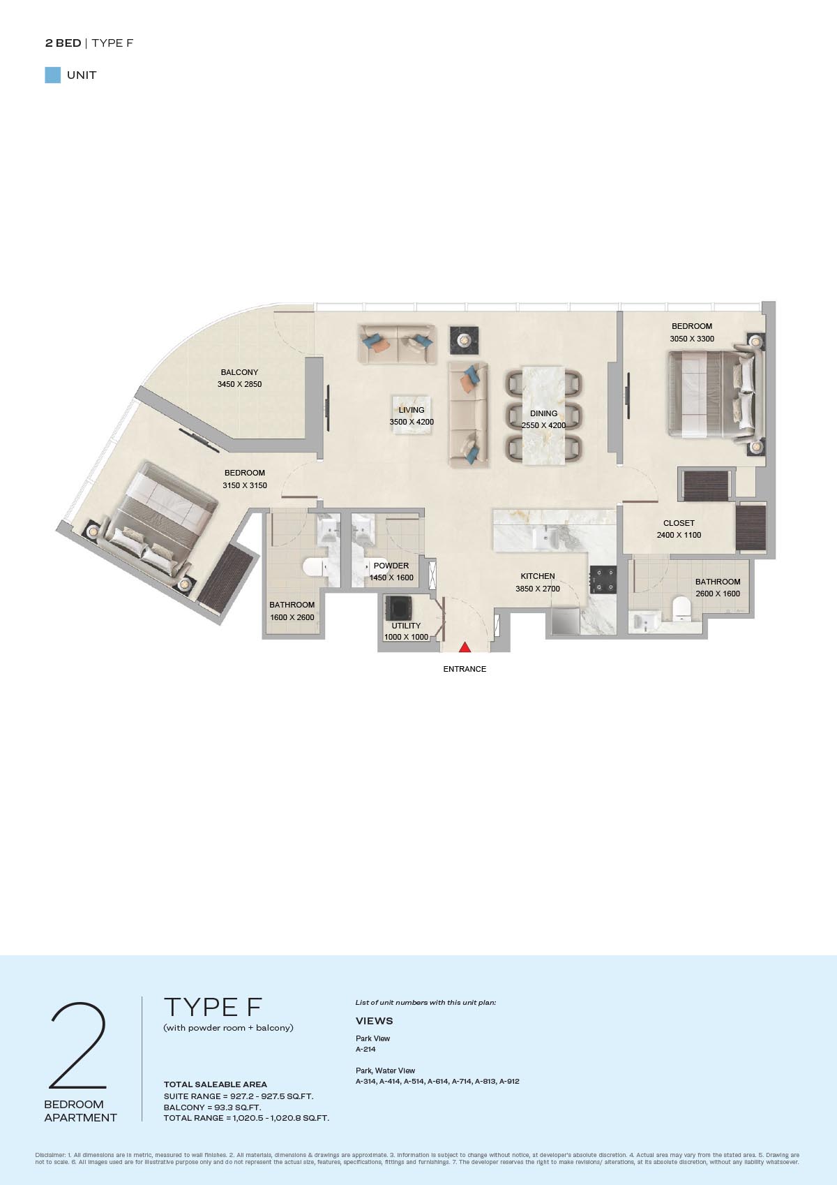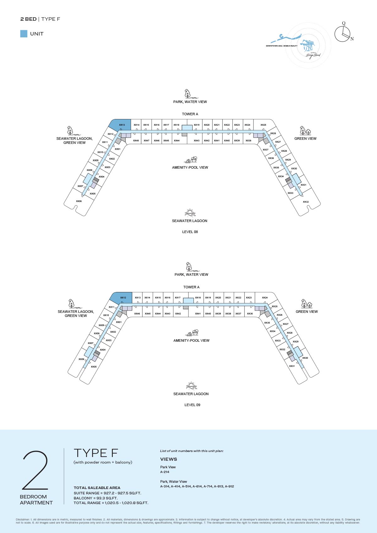 | Tower A | 2 Bedrooms | Typical Layout - Level 08 & 09 (Type F) | 1020.80 Sq Ft | Click Here |
