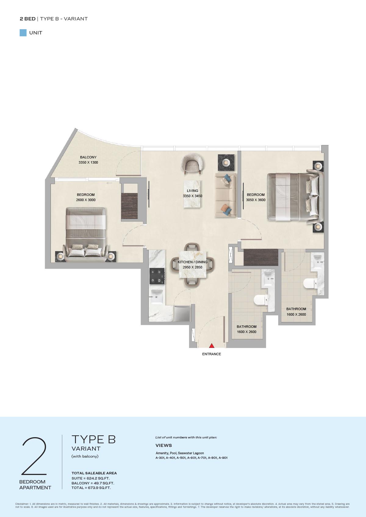 | Tower A | 2 Bedrooms | Typical Layout - Level 09 (Type B Variant) | 673.90 Sq Ft | Click Here |