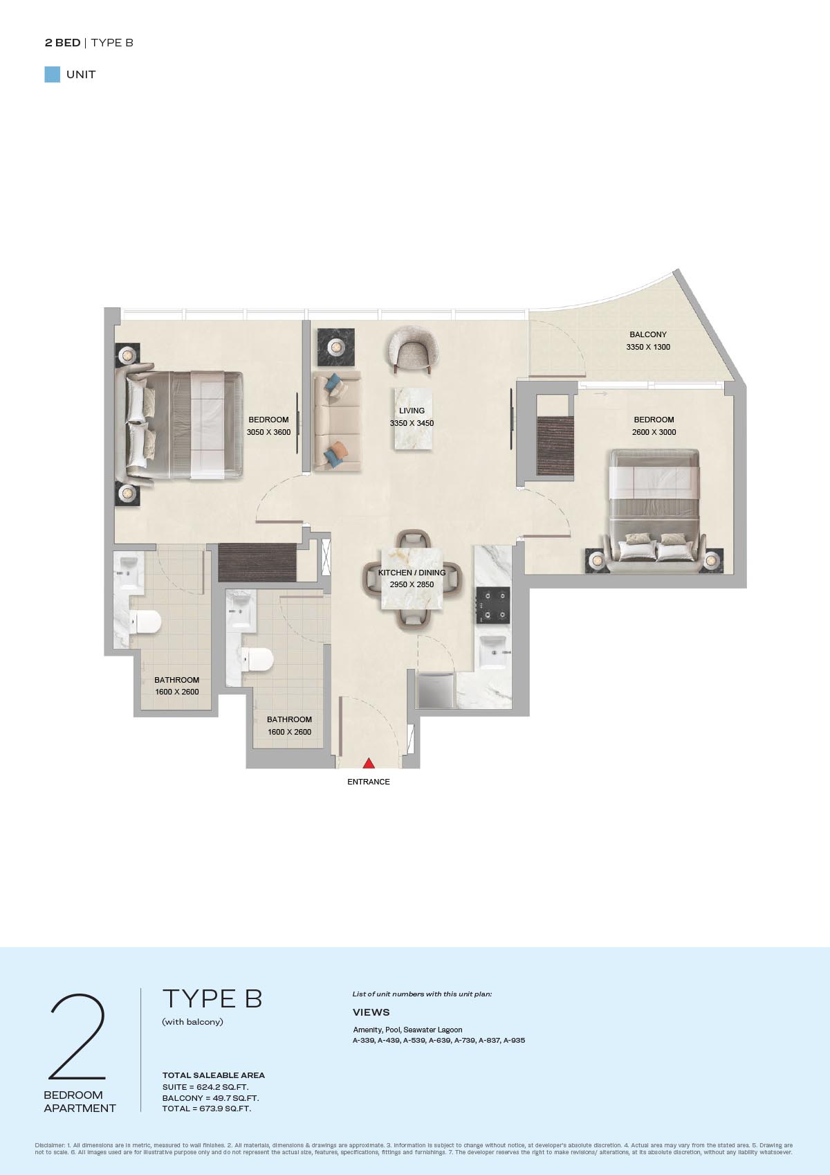 | Tower A | 2 Bedrooms | Typical Layout - Level 03 & 04 (Type B Variant) | 673.90 Sq Ft | Click Here |