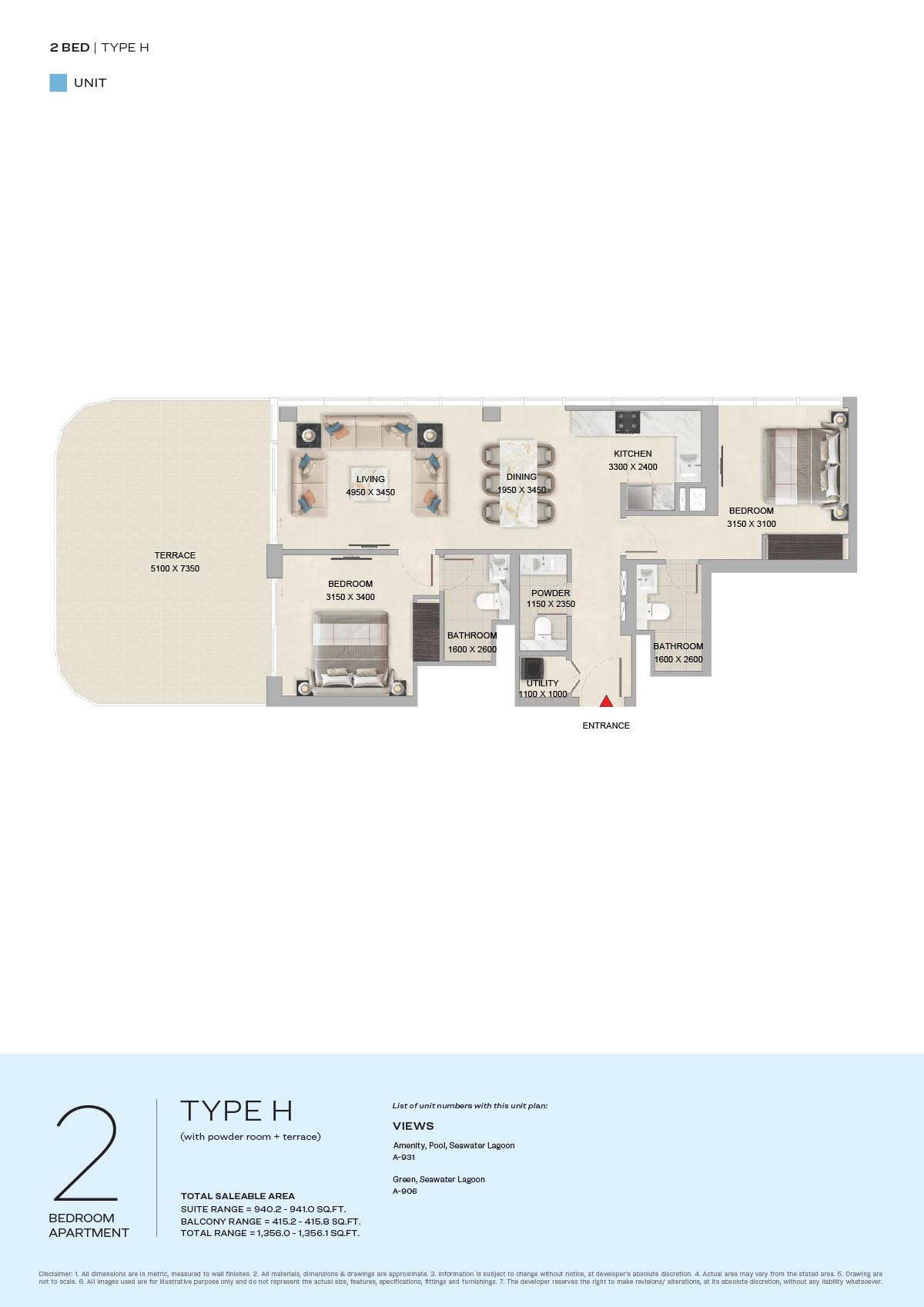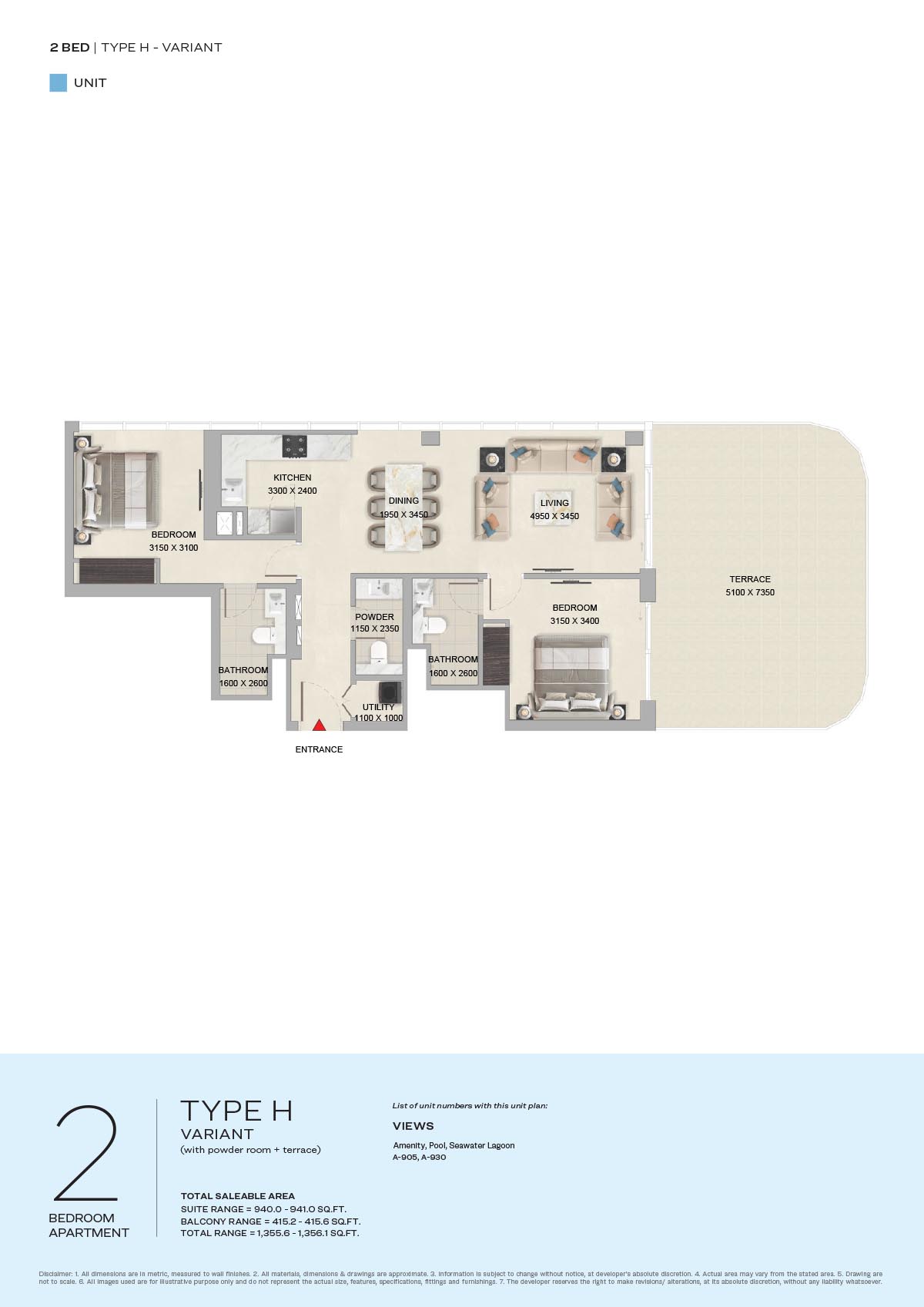 | Tower A | 2 Bedrooms | Typical Layout - Level 09 (Type H Variant) | 1356.10 Sq Ft | Click Here |