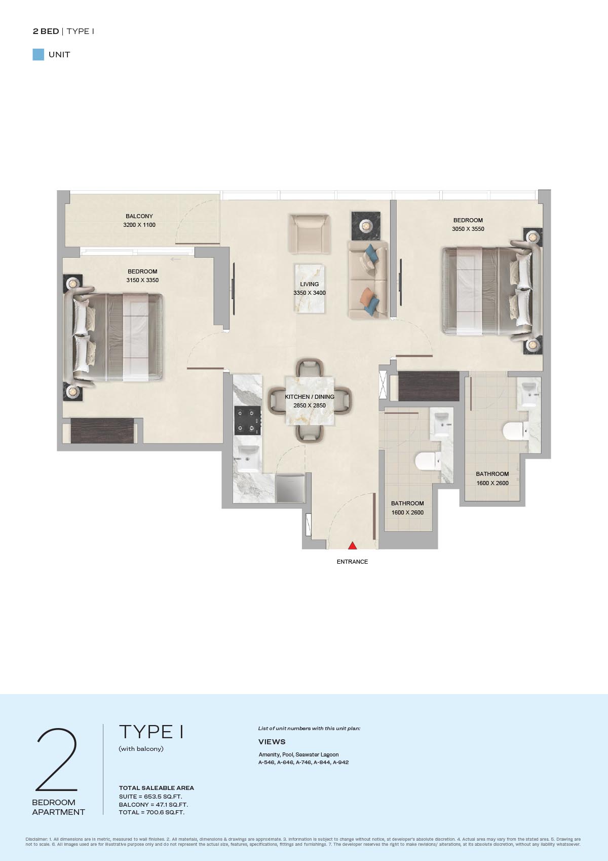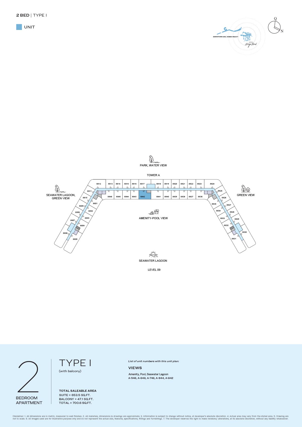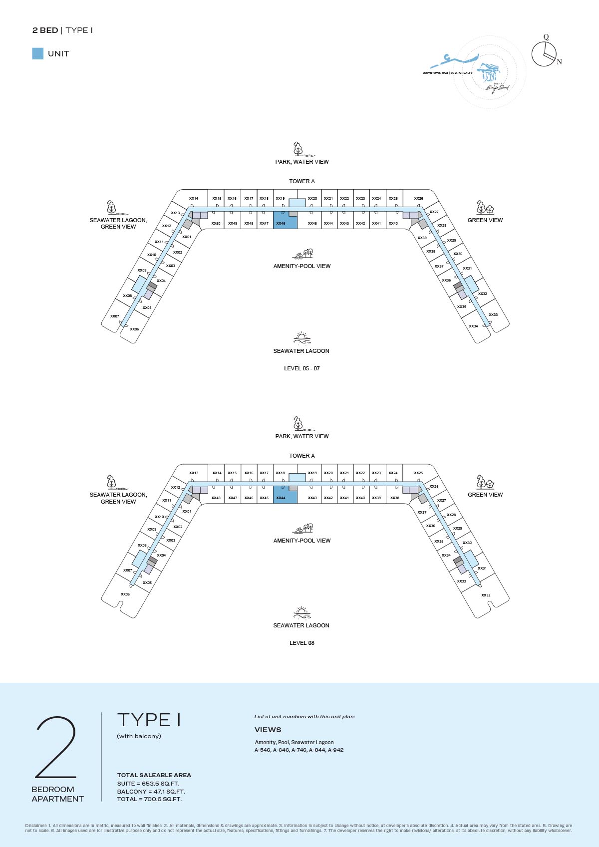 | Tower A | 2 Bedrooms | Typical Layout - Level 09 (Type I) | 700.60 Sq Ft | Click Here |