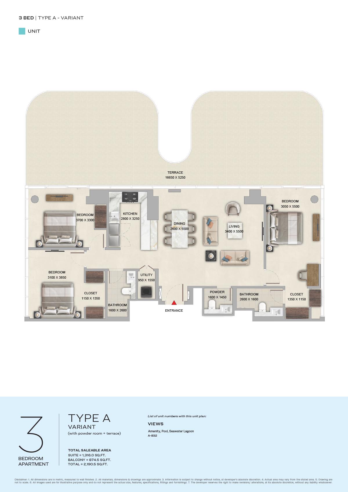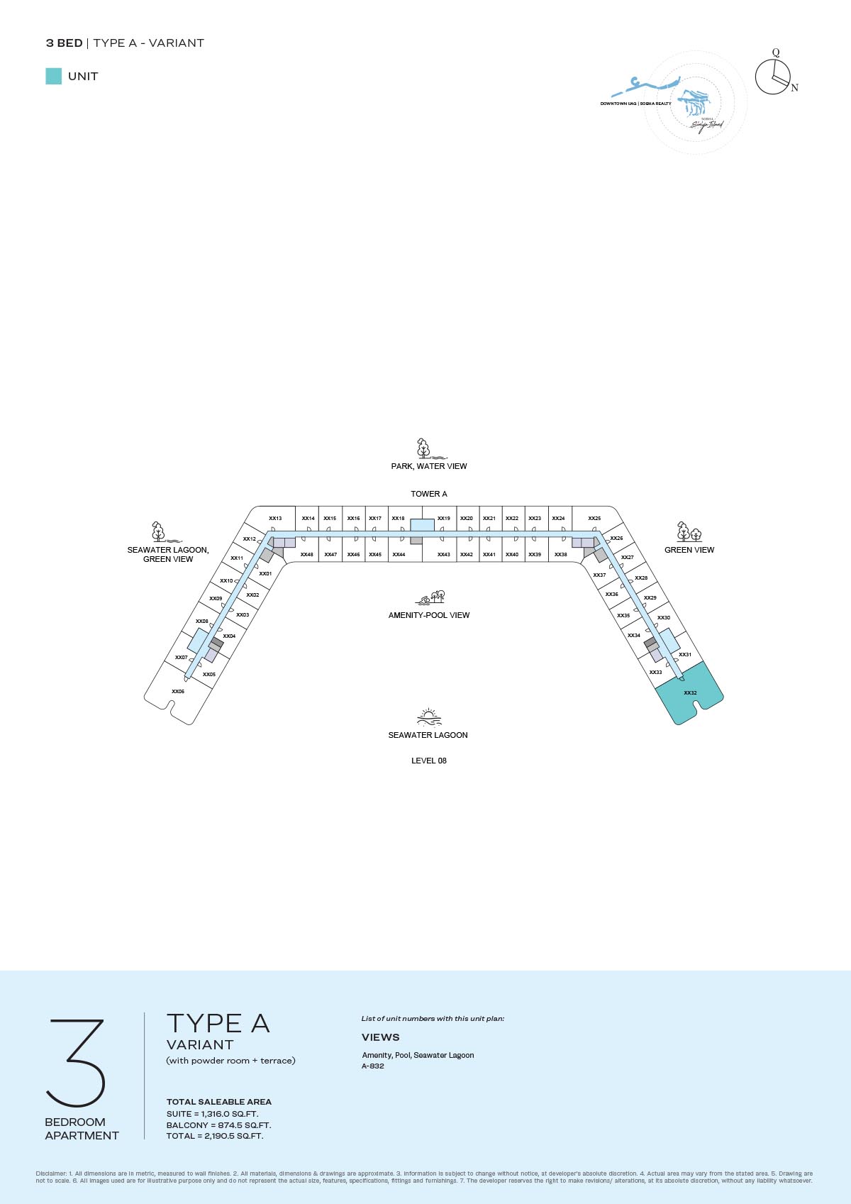 | Tower A | 3 Bedrooms | Level 08 (Type A Variant) | 2190.50 Sq Ft | Click Here |