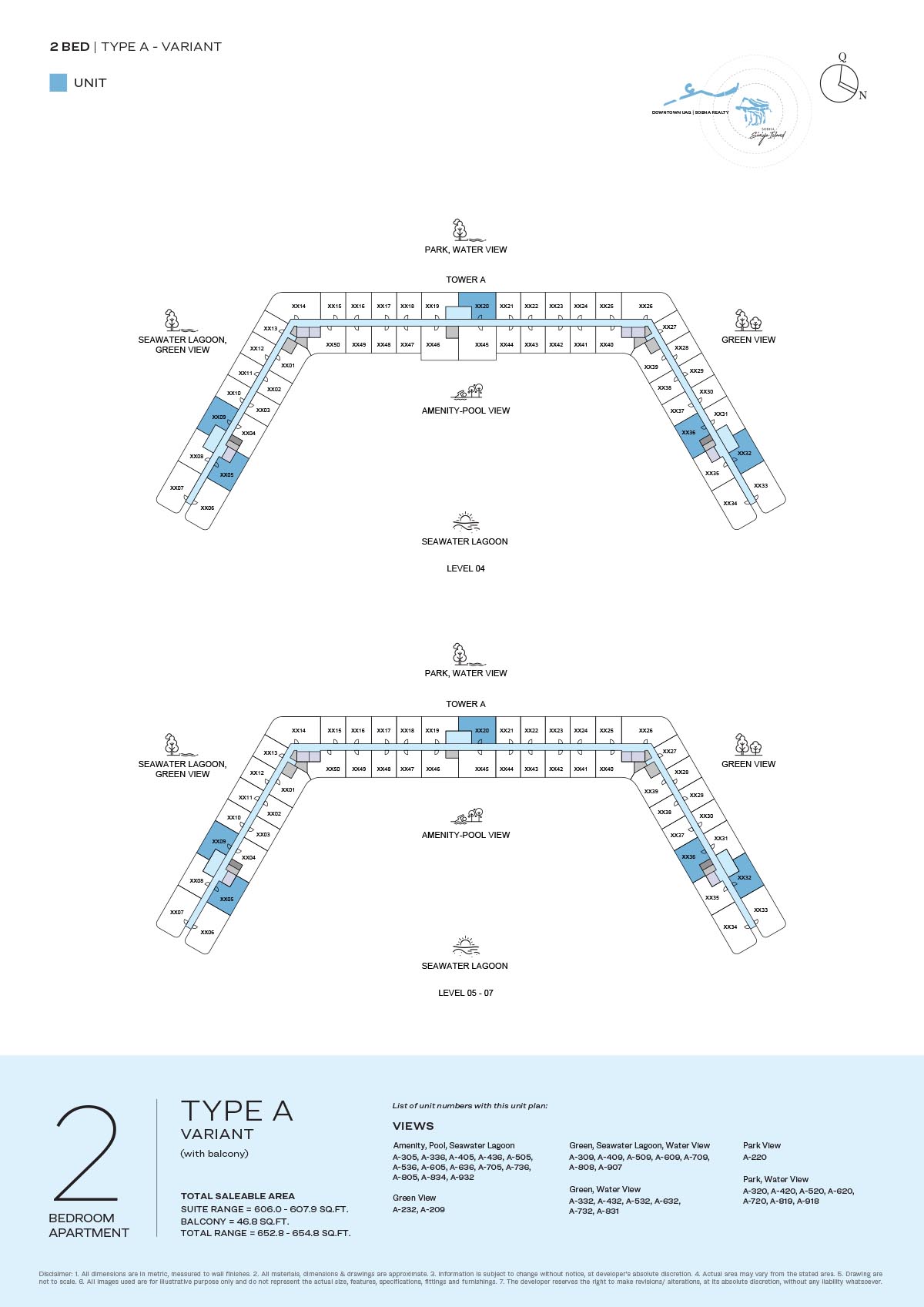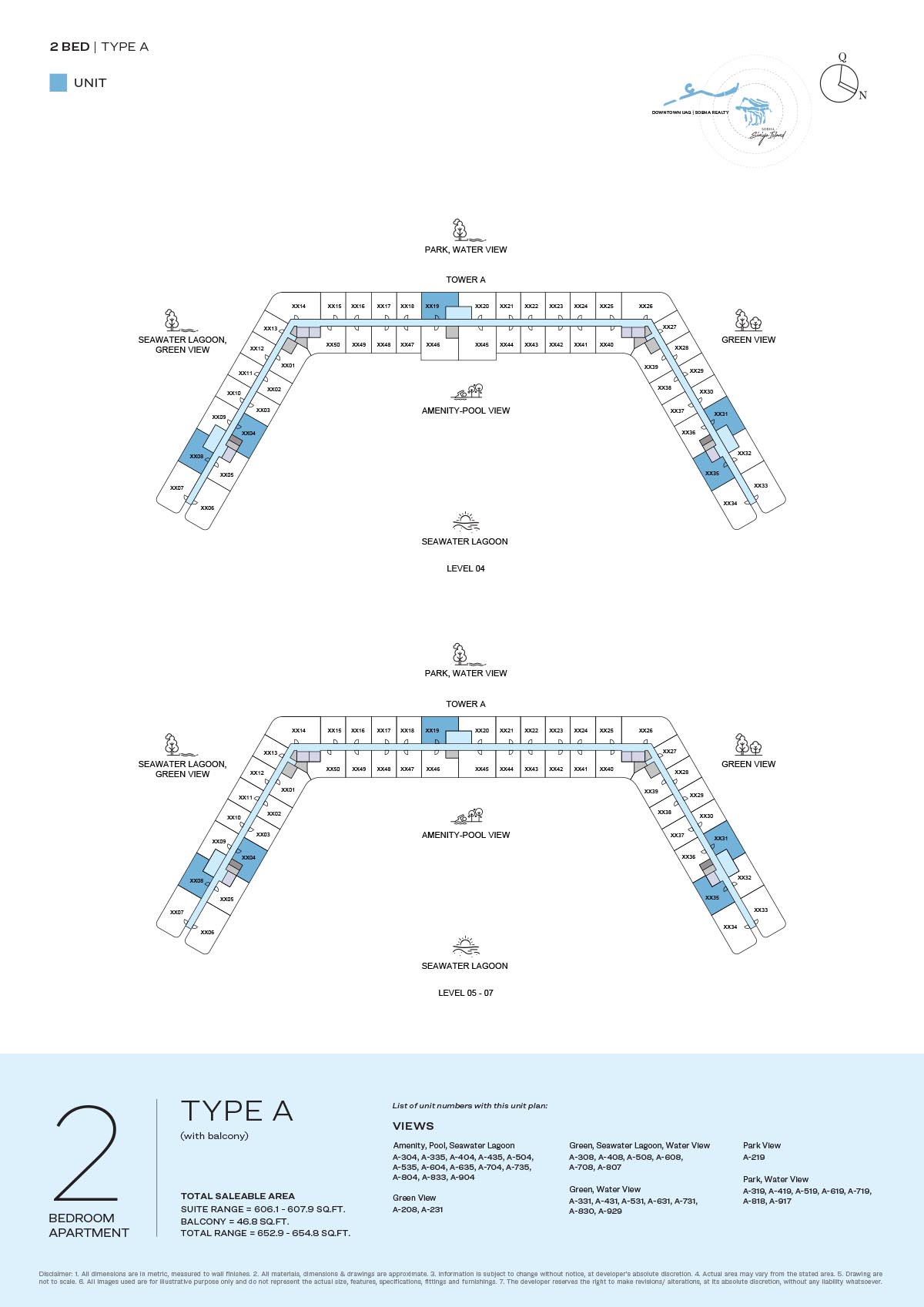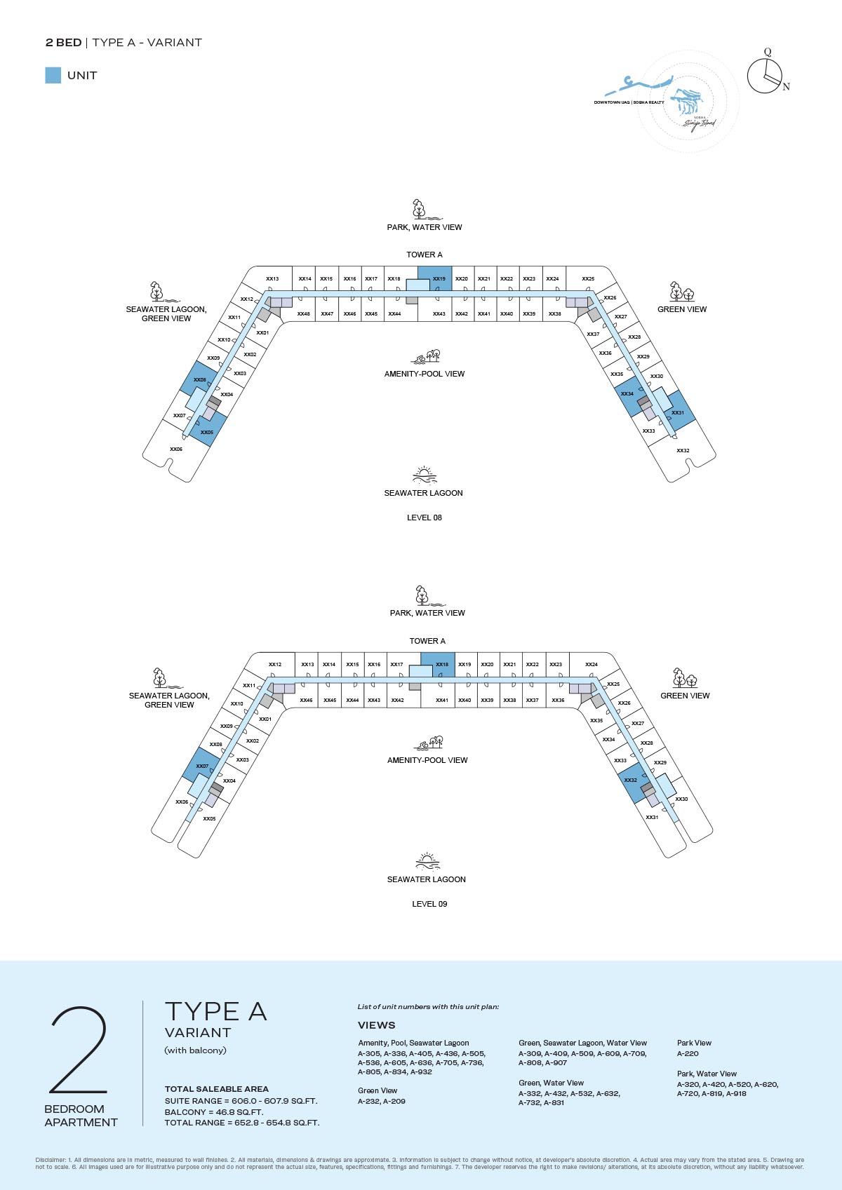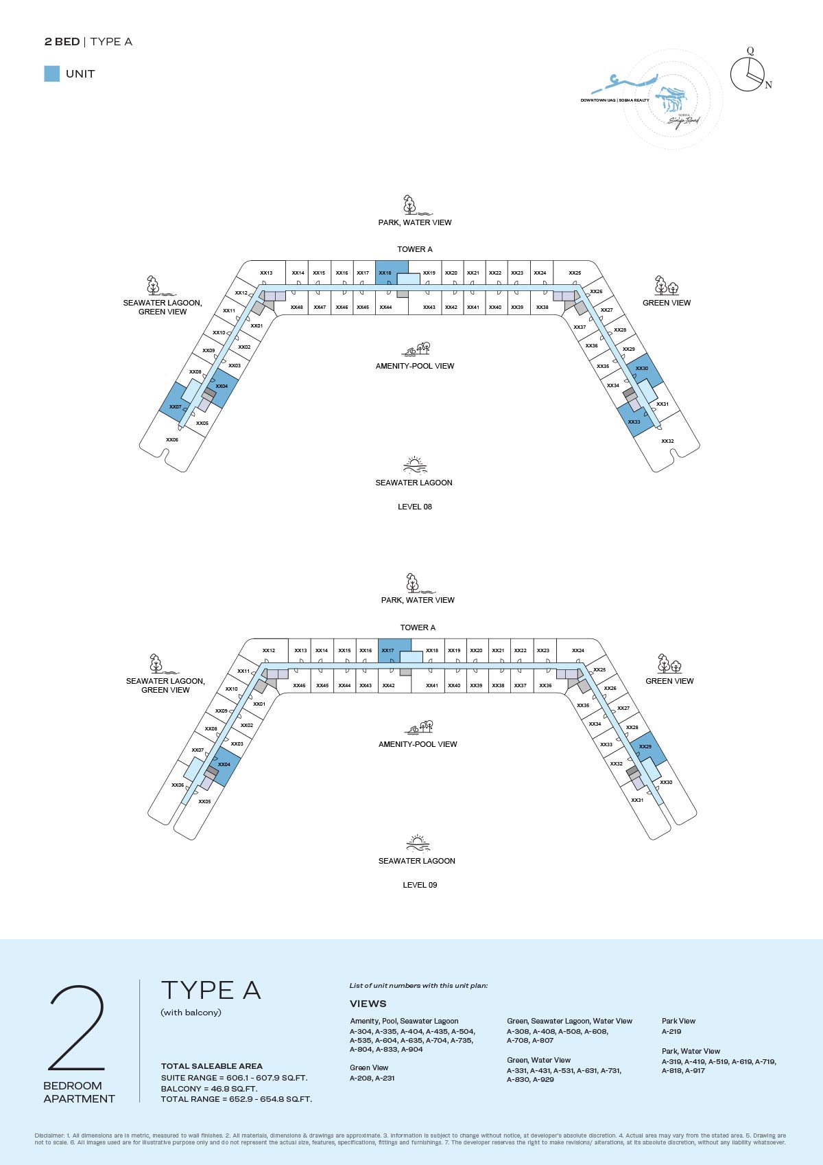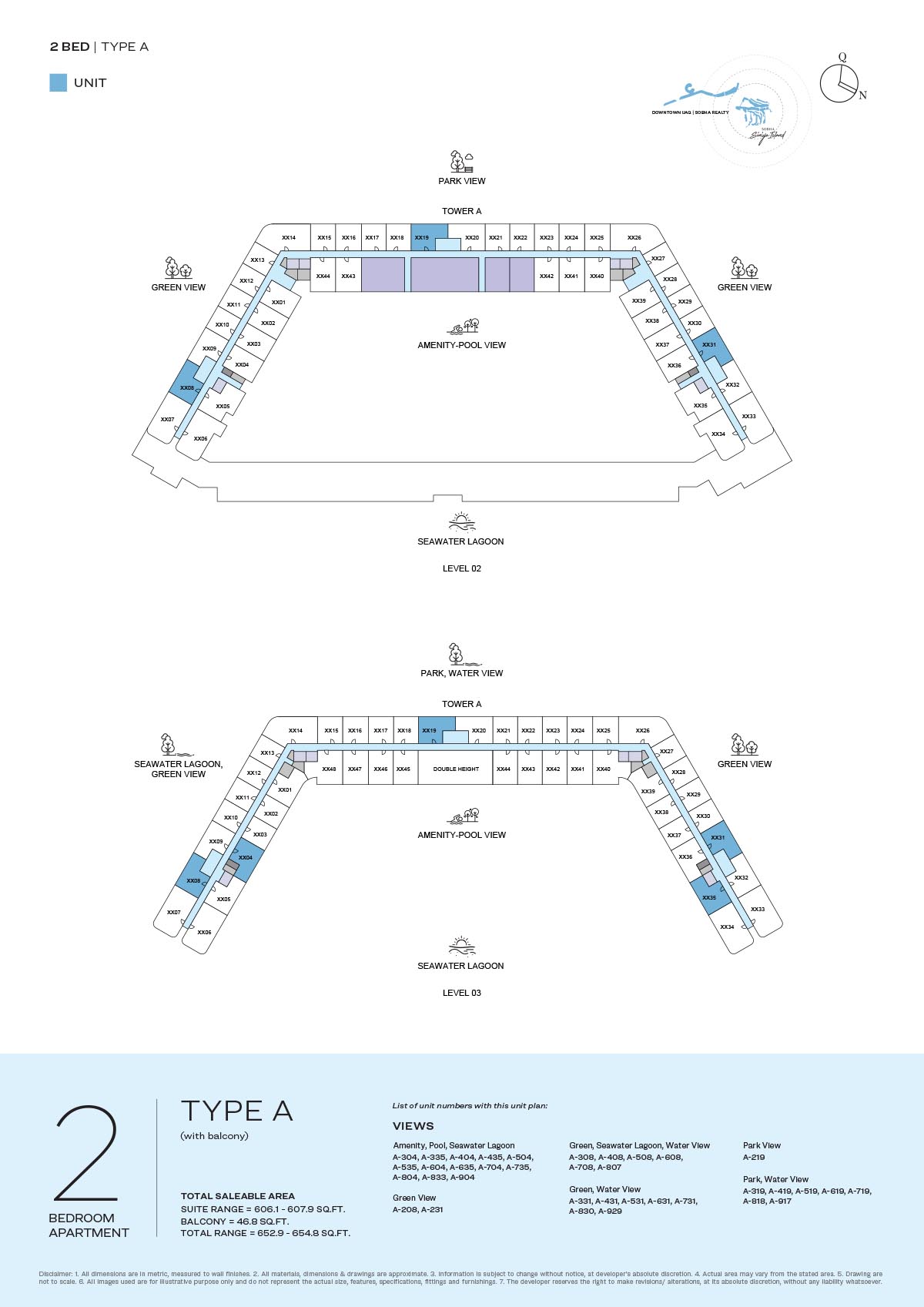 | Tower A | 2 Bedrooms | Typical Layout - Level 08 & 09 (Type A) | 654.80 Sq Ft | Click Here |