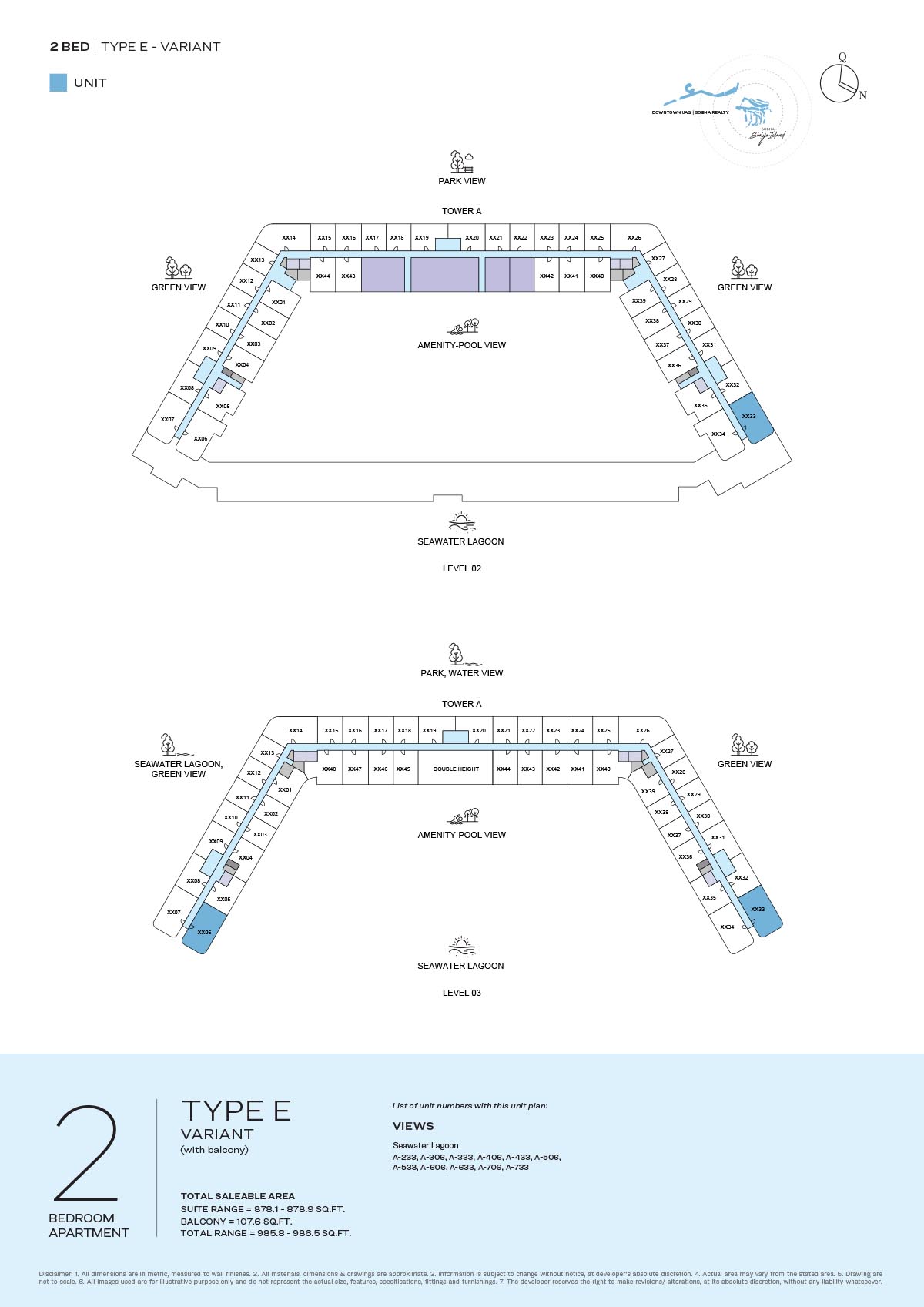 | Tower A | 2 Bedrooms | Typical Layout - Level 02 & 03 (Type E Variant) | 986.50 Sq Ft | Click Here |