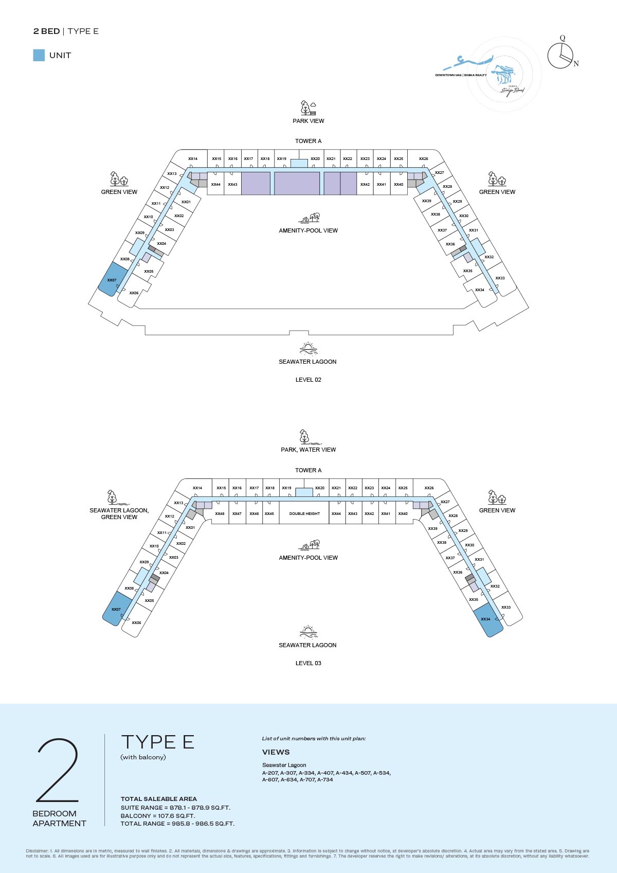 | Tower A | 2 Bedrooms | Typical Layout - Level 02 & 03 (Type E) | 986.50 Sq Ft | Click Here |