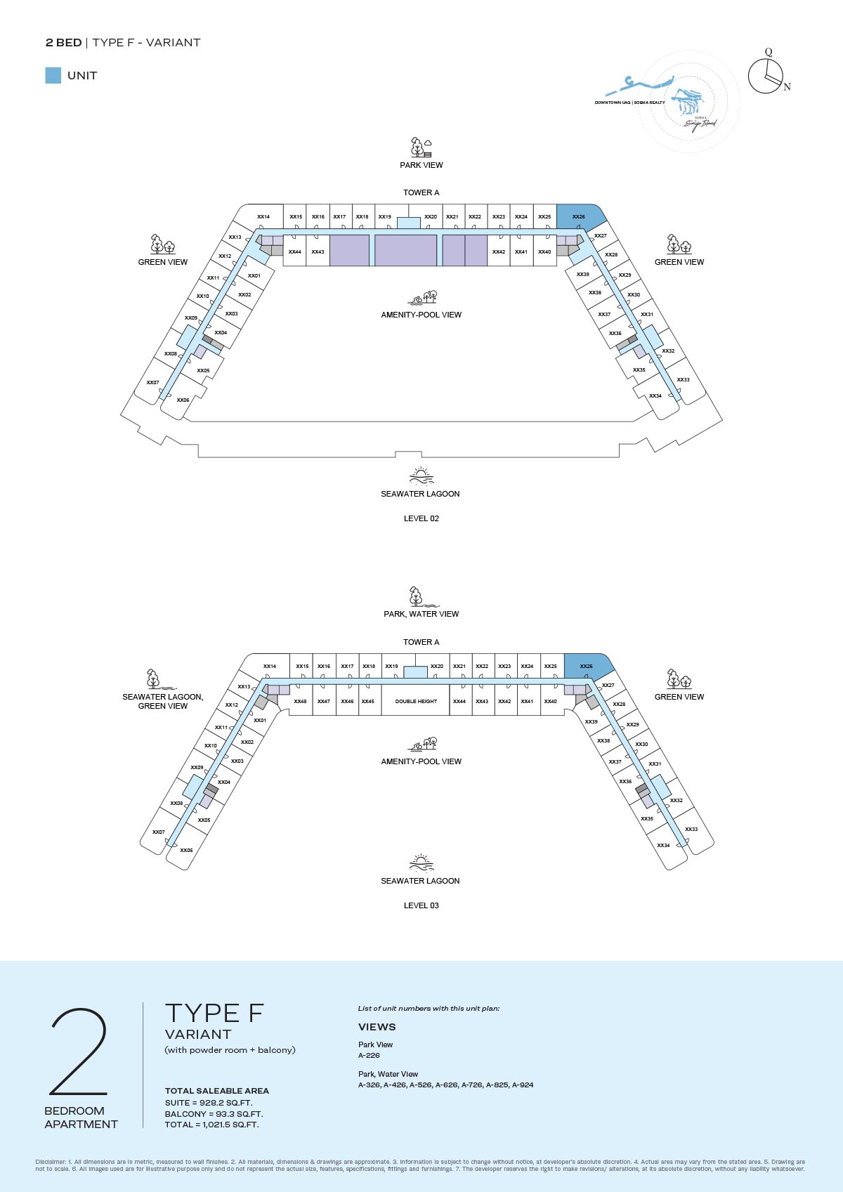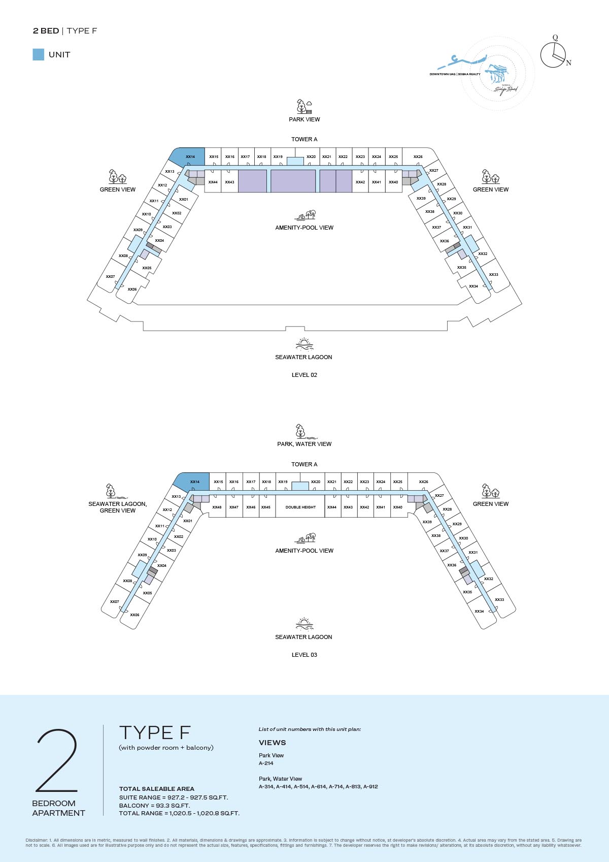 | Tower A | 2 Bedrooms | Typical Layout - Level 02 & 03 (Type F) | 1020.80 Sq Ft | Click Here |