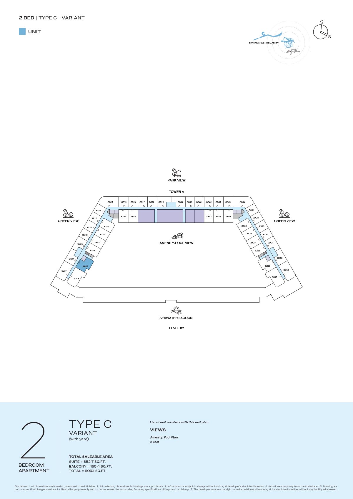 | Tower A | 2 Bedrooms | Typical Layout - Level 02 (Type C Variant) | 809.10 Sq Ft | Click Here |
