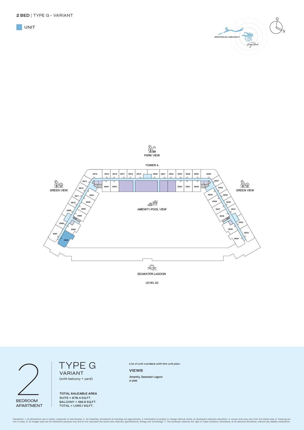 | Tower A | 2 Bedrooms | Typical Layout - Level 02 (Type G Variant) | 1065.10 Sq Ft | Click Here |