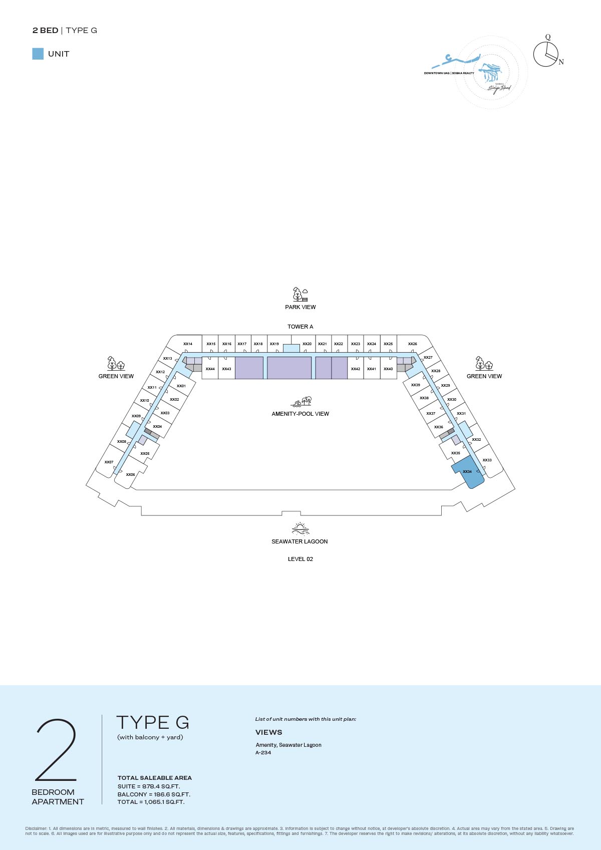 | Tower A | 2 Bedrooms | Typical Layout - Level 02 (Type G) | 1065.10 Sq Ft | Click Here |