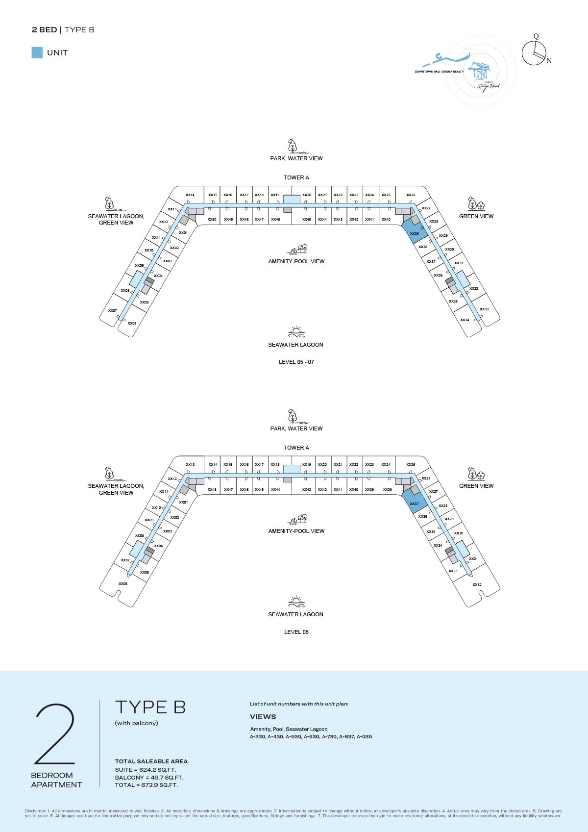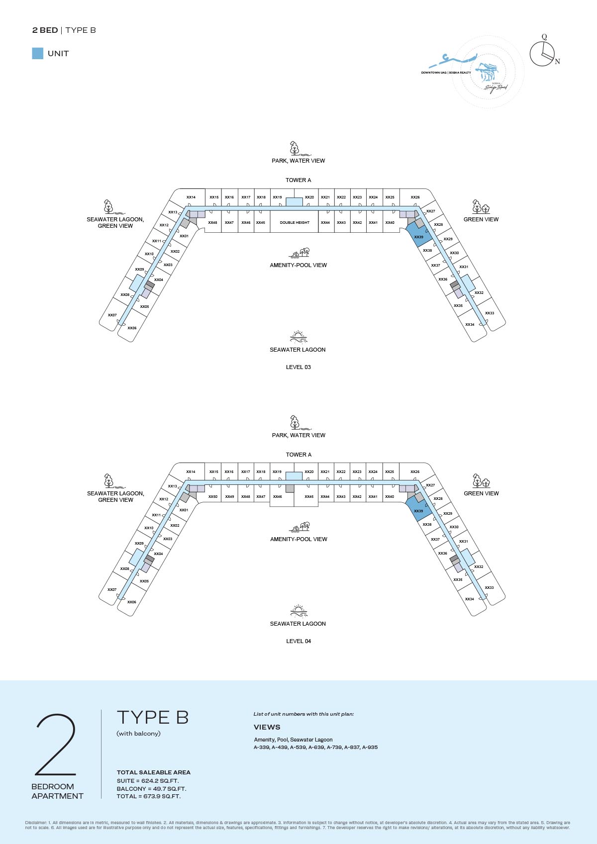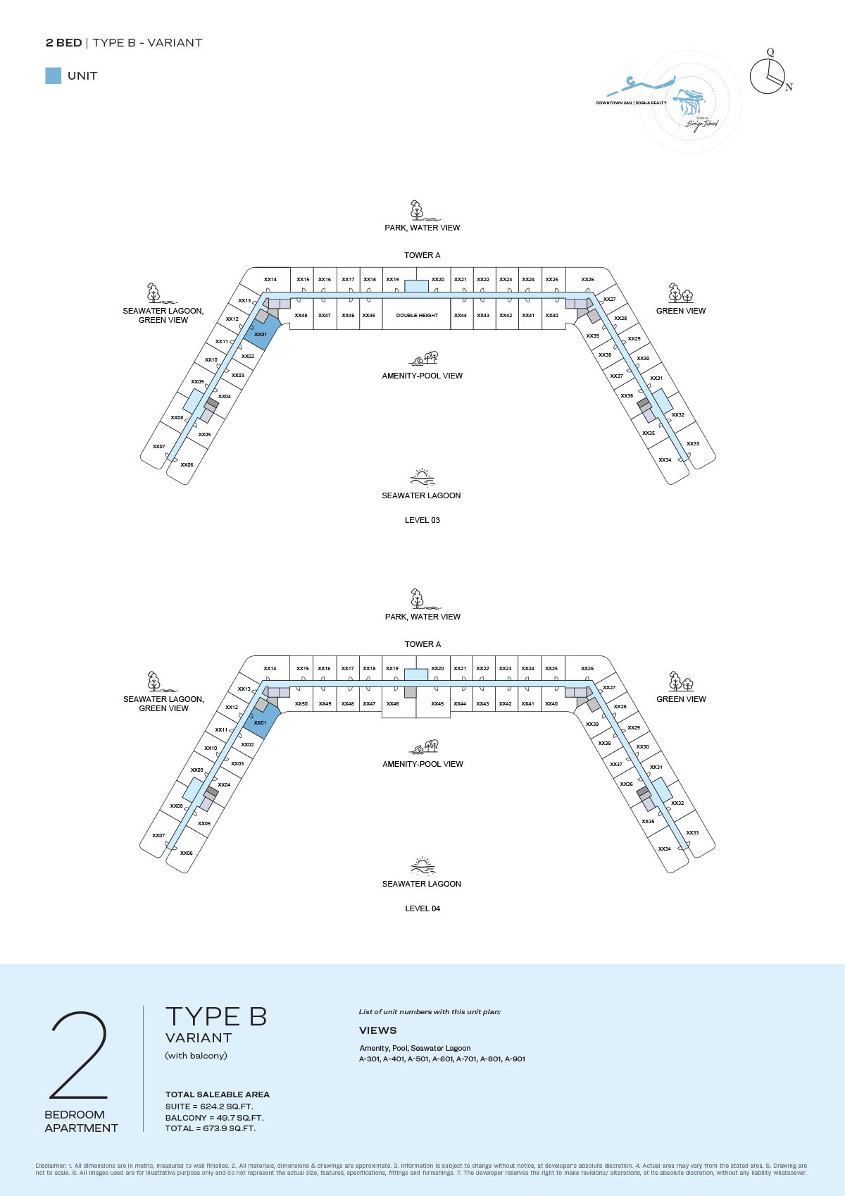 | Tower A | 2 Bedrooms | Typical Layout - Level 03 & 04 (Type B) | 673.90 Sq Ft | Click Here |