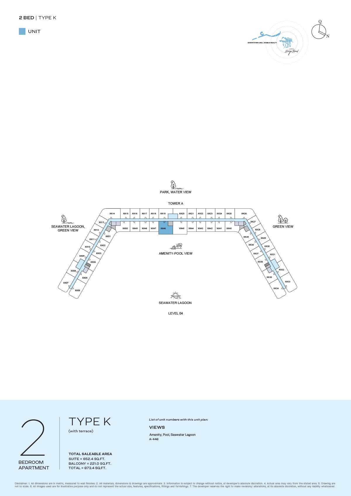 | Tower A | 2 Bedrooms | Level 04 (Type K) | 873.40 Sq Ft | Click Here |