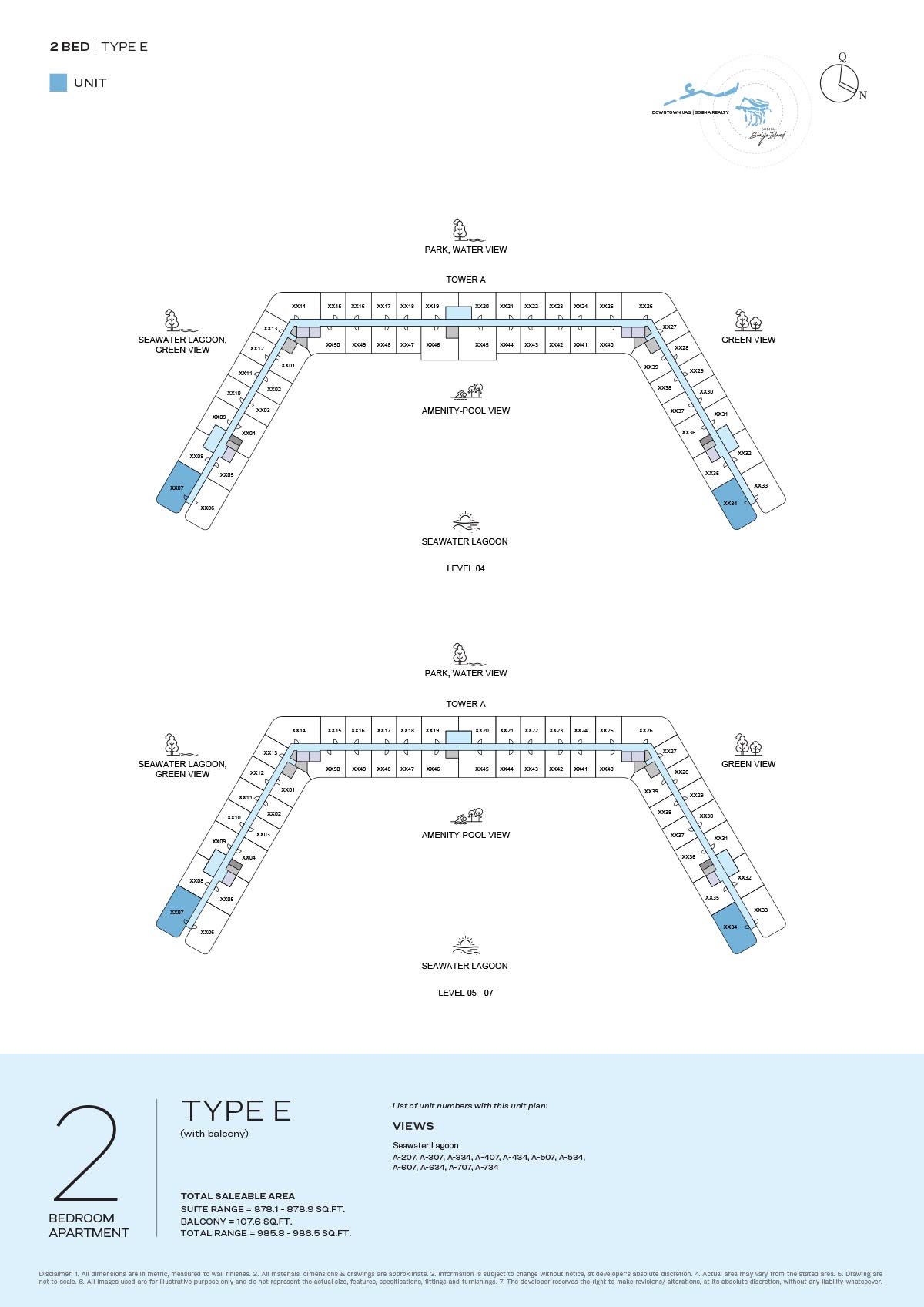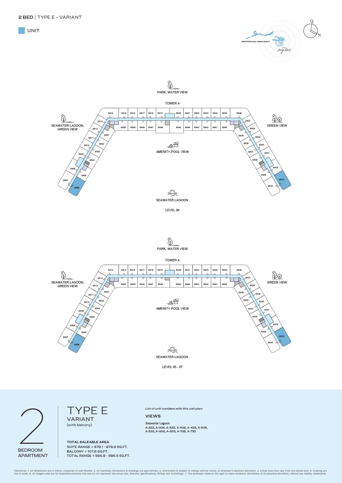 | Tower A | 2 Bedrooms | Level 04 To 07 (Type E Variant) | 986.50 Sq Ft | Click Here |