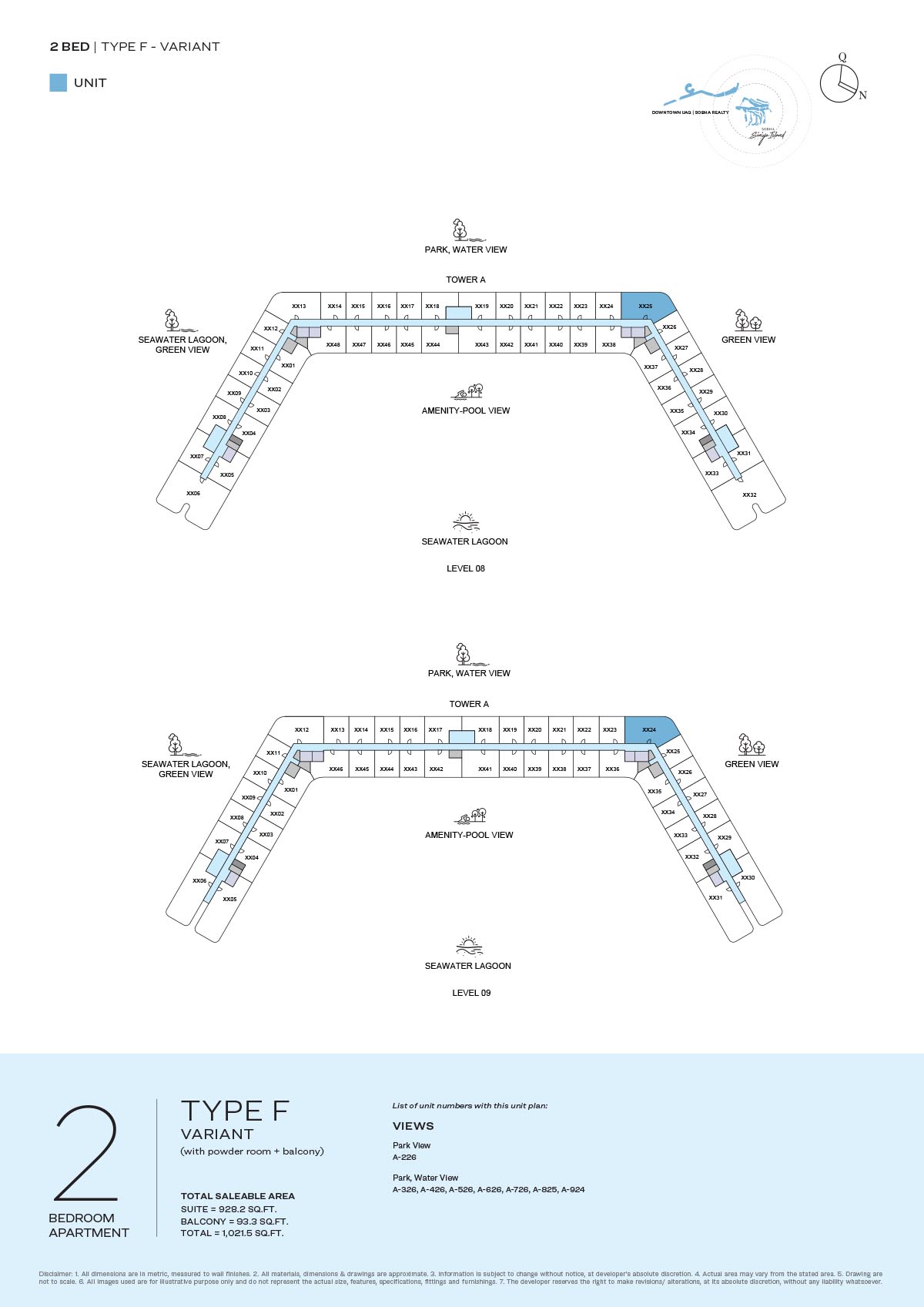 | Tower A | 2 Bedrooms | Level 08 & 09 (Type F Variant) | 1021.50 Sq Ft | Click Here |