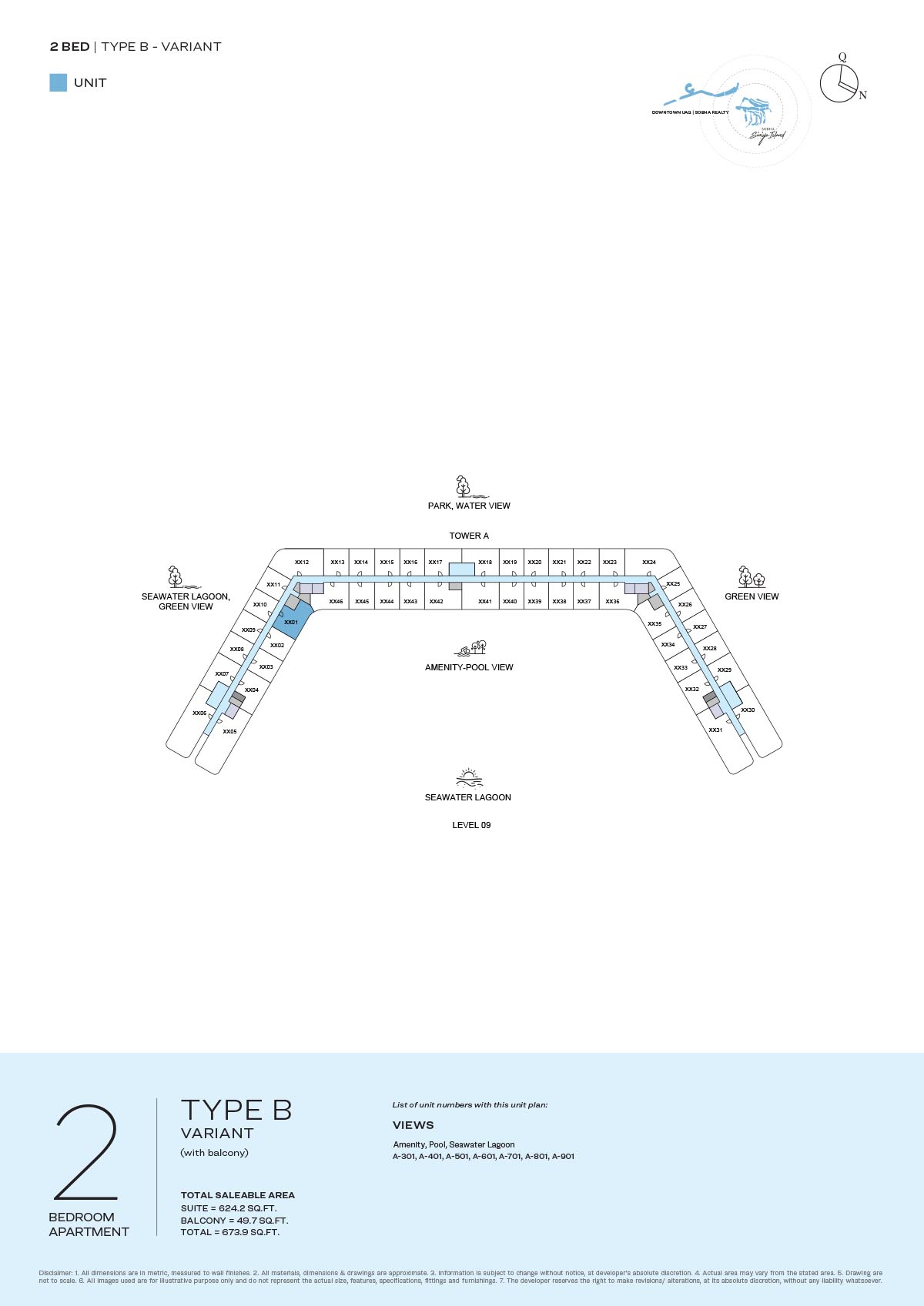 | Tower A | 2 Bedrooms | Level 09 (Type B Variant) | 673.90 Sq Ft | Click Here |