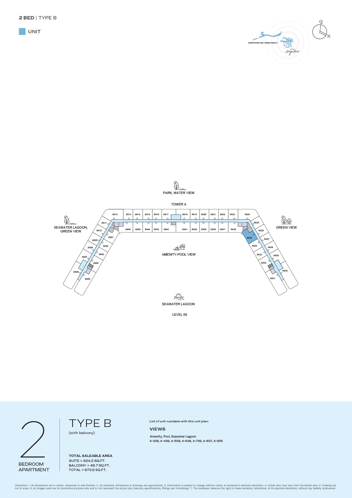 | Tower A | 2 Bedrooms | Typical Layout - Level 09 (Type B) | 673.90 Sq Ft | Click Here |