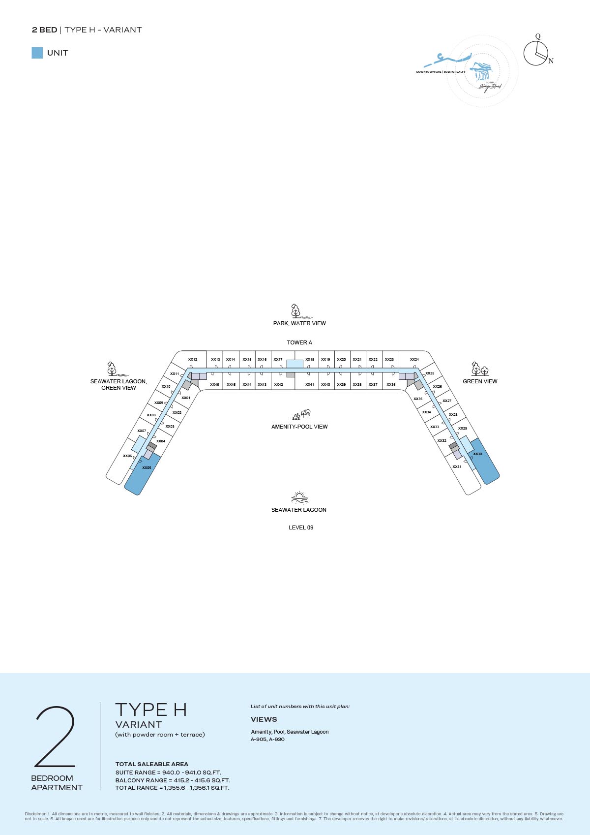 | Tower A | 2 Bedrooms | Level 09 (Type H Variant) | 1356.10 Sq Ft | Click Here |