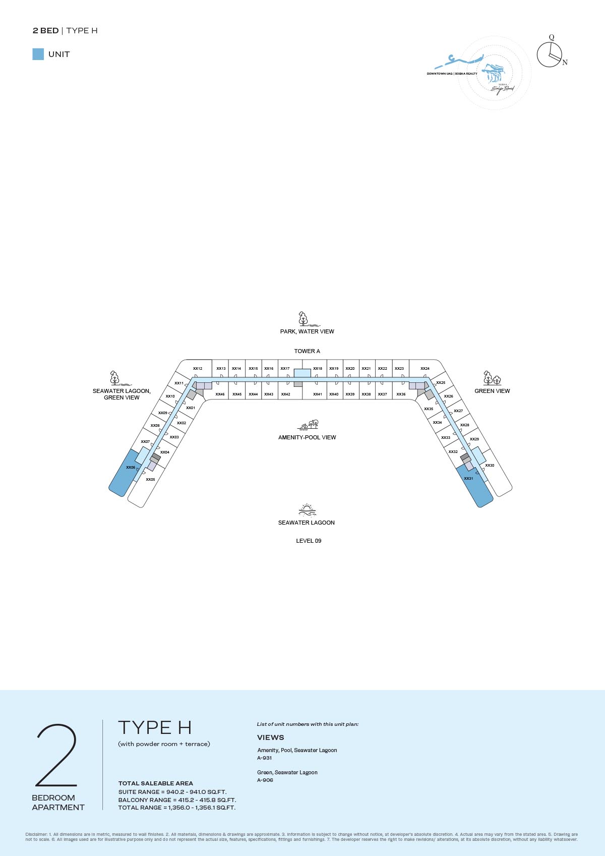 | Tower A | 2 Bedrooms | Typical Layout - Level 09 (Type H) | 1356.10 Sq Ft | Click Here |