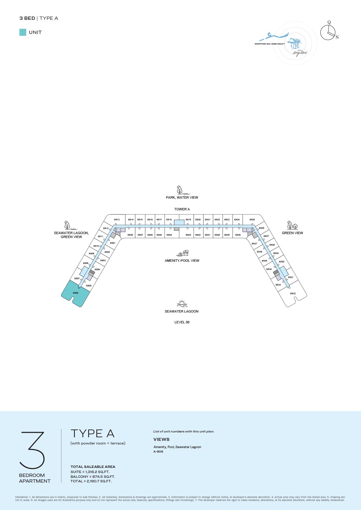 | Tower A | 3 Bedrooms | Typical Layout - Level 08 (Type A) | 2190.70 Sq Ft | Click Here |