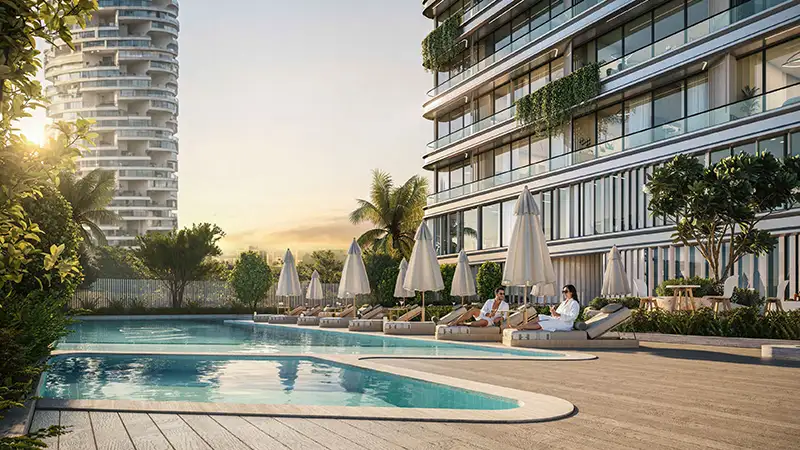 - Resort-style swimming pool surrounded by landscaped leisure zones.