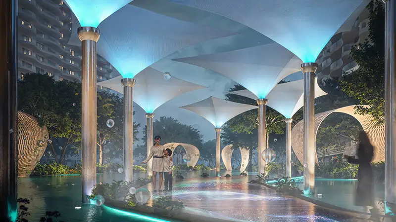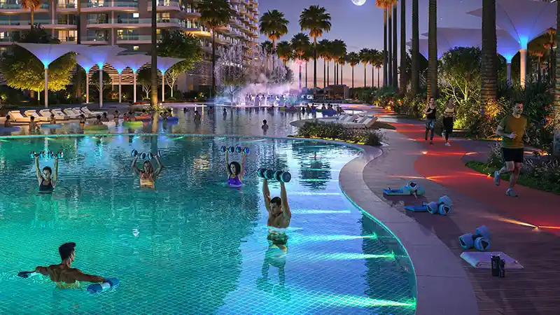 The experience of leisure revolves around full-fledged lagoon conditions which beckon an invite to residents to rest, unwind and reconnect. The development flows with serene swimming pools, which are mixed up with floating pods that are used as social and dining areas gently over the water. Gyms where the activity is in water like aqua gyms offer low-impact workouts and outdoor yoga and wellness areas offer restful spaces. Outdoor canopies and mist corridors with cooling water will keep the outdoor movement of people comfortable all year round and turn empty spaces into places of daily escape. Yes, this is a residential destination we are waiting for, where architecture, lifestyle, and leisure merge in a clear and intended destination, where life is meant to experience in the present, and in the manner that life is destined to experience tomorrow.
