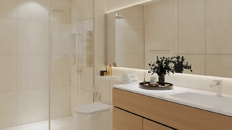 - Interior finishes reflect Mediterranean simplicity through natural tones, subtle textures, and contemporary detailing that feels timeless rather than trend-driven.
