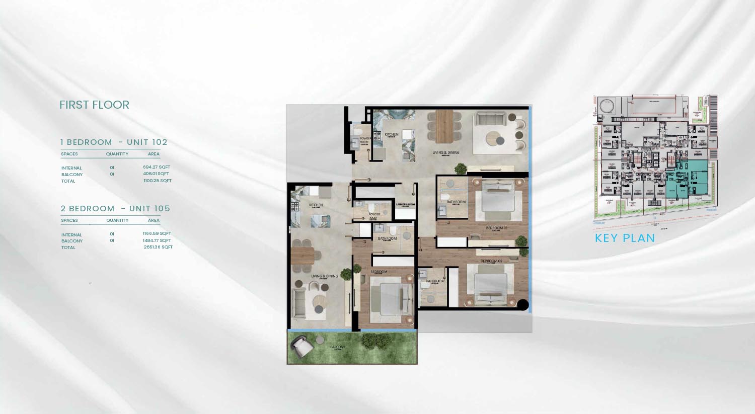 Vayla Residences provides a wide selection of floor plans, offering exclusive class 1, 2 & 3-bedroom apartments and duplexes at ease. The trends of each design are to provide spaciousness, privacy, and functionality to the floor plans. Living and dining accommodation is flexible, bedrooms leave space and comfort to themselves, with ample storage facilities. Large balconies stretch the living space out to the environment surrounding where there is more association with the environment.