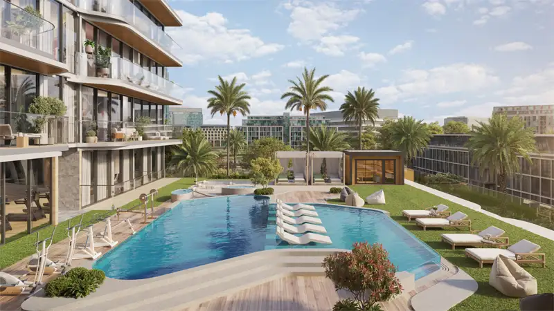 AUM Development successfully delivered a master plan landmark, emphasising a smart, harmonious, and people-friendly shared living in Dubai. Emerging as an attentively crafted low-rise wonder craftsmanship, this property creates spaces where light, natural serenity, and movement flow perfectly. Designed with a couple of fitness and recreational facilities such as pools for kids & adults, a covered sky trail, indoor & outdoor gyms with pool view, residents will rejoice in a daily routine packed with active and exciting activities. An outdoor party deck, kids’ play zone, a sky cinema, and common areas are reserved for celebrating leisure and meaningful connection with neighbours and family.