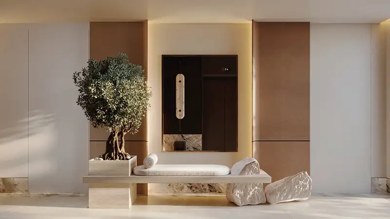 - Studios, 1 and 2-bedroom apartments, thoughtfully planned to maximize natural light and spatial flow, creating interiors that breathe and inspire relaxation.