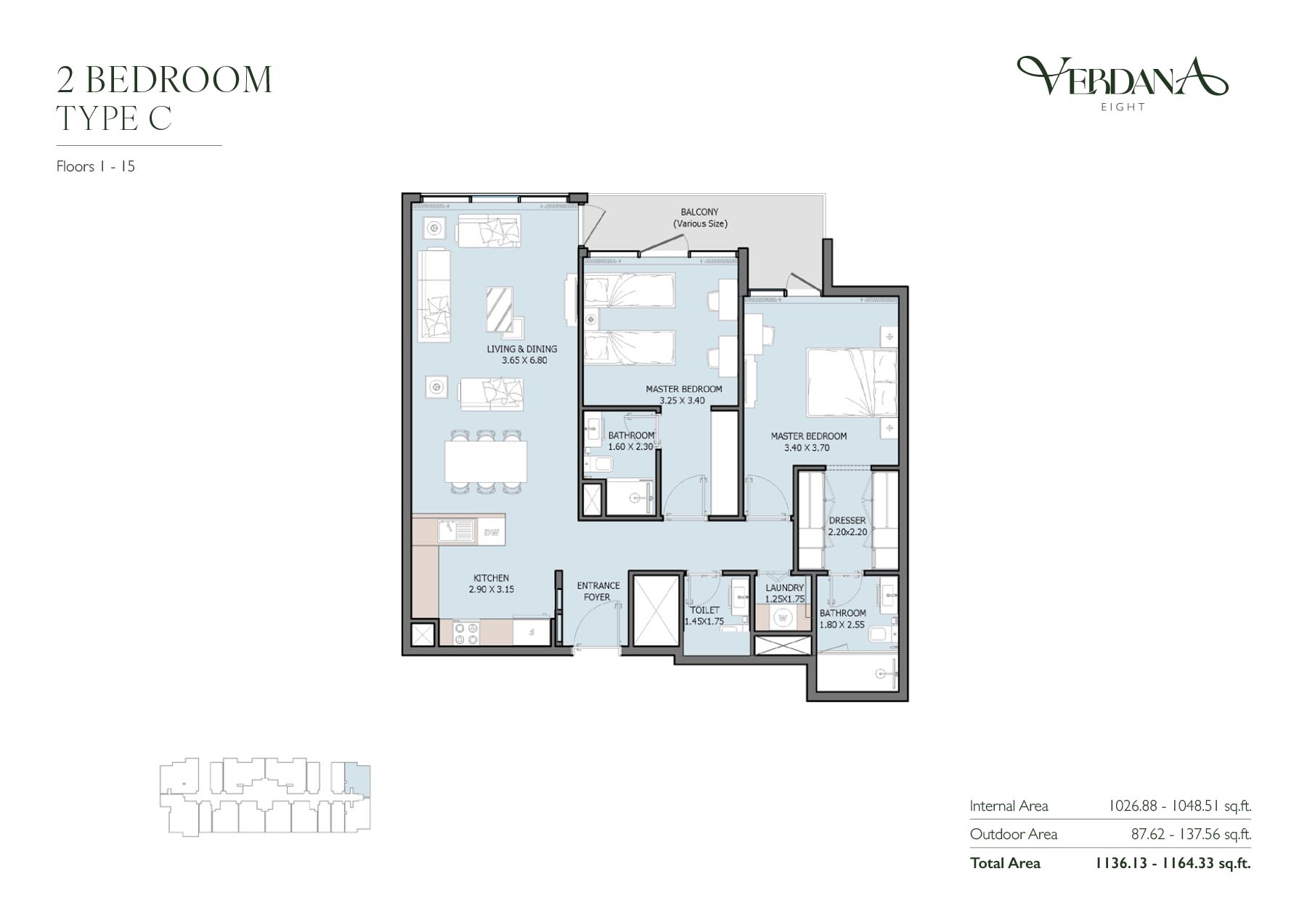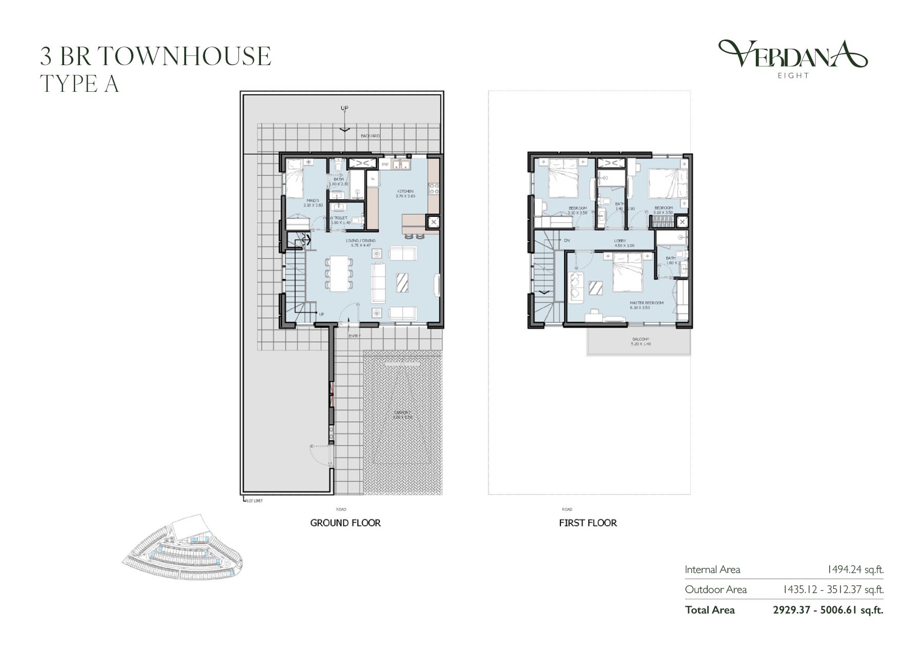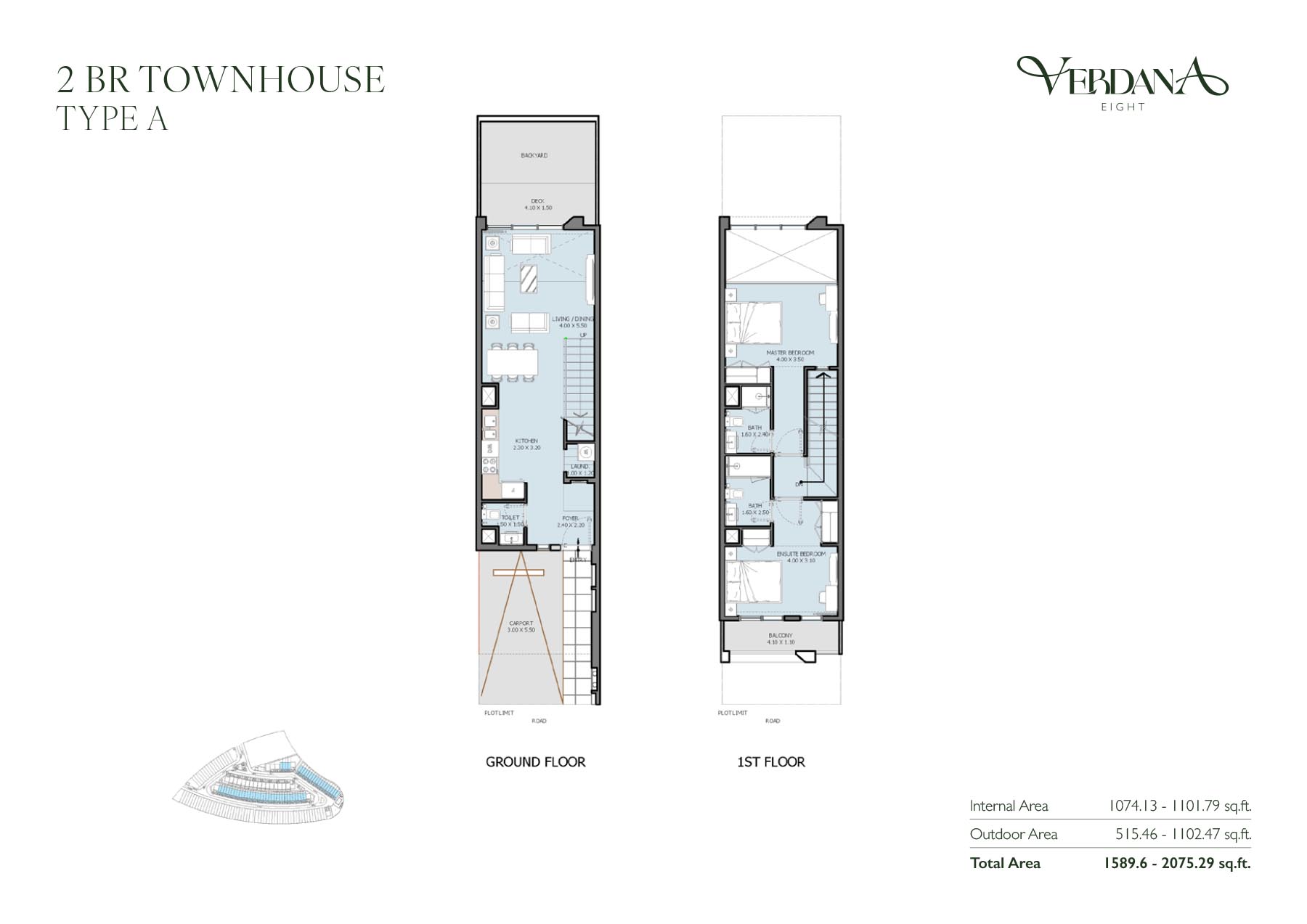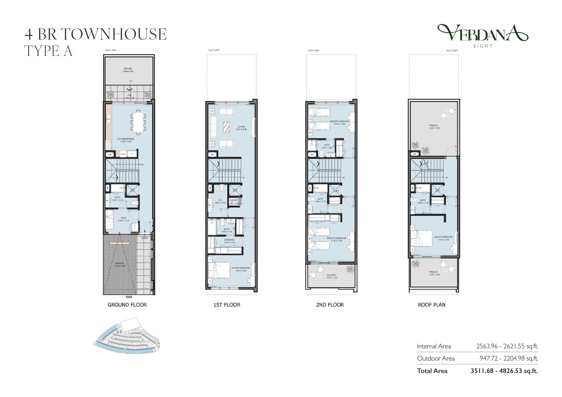 Verdana 8 floor plans have been designed keeping versatility, style, and lifestyle with studios, 1 & 2-bedroom apartments and 2 to 4-bedroom townhouses. The homes are in the forms of studios up to four-bedroom townhouses which are designed in a wise manner to be able to make use of natural lighting and usability. Studio sizes suits young professionals, and one bedroom have modern open-plan designs that are suitable to couples. All houses will have efficient bathrooms, complete tiles, vanity units and inbuilt wardrobes- it is functional and very subtle on design. The townhouses come with select houses and maid room and laundry at the expense.