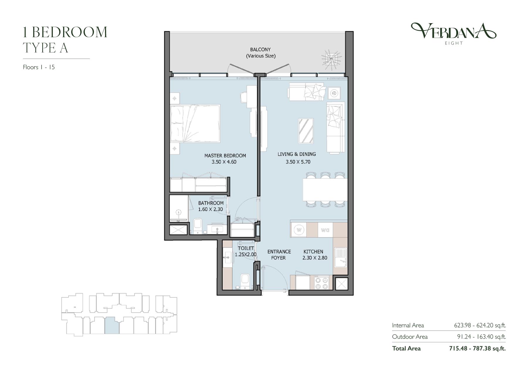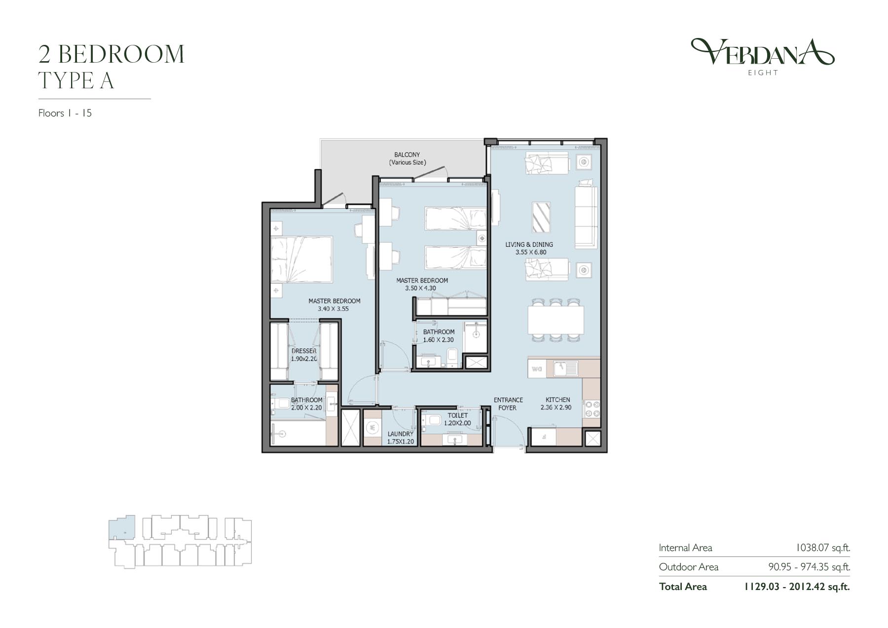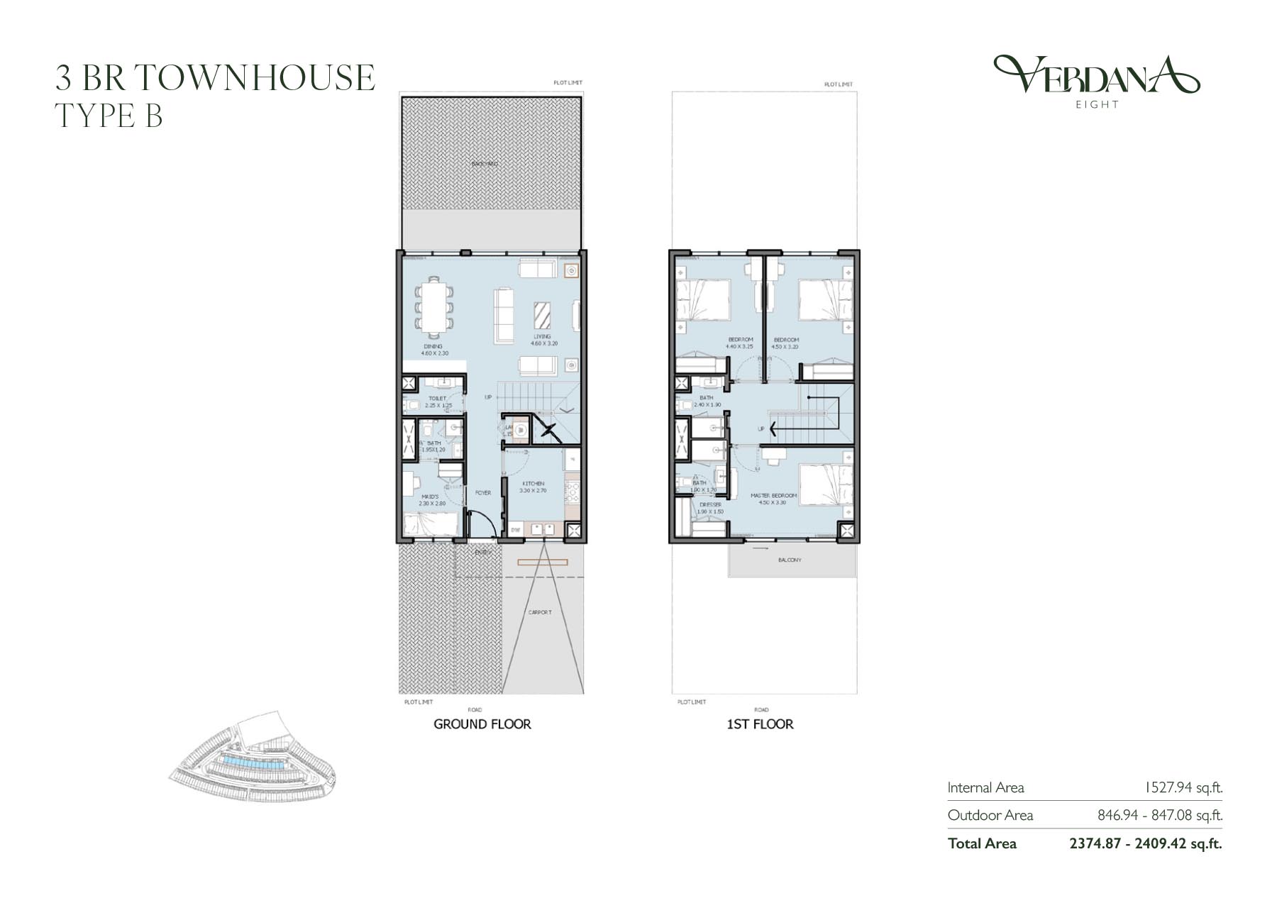 Verdana 8 floor plans have been designed keeping versatility, style, and lifestyle with studios, 1 & 2-bedroom apartments and 2 to 4-bedroom townhouses. The homes are in the forms of studios up to four-bedroom townhouses which are designed in a wise manner to be able to make use of natural lighting and usability. Studio sizes suits young professionals, and one bedroom have modern open-plan designs that are suitable to couples. All houses will have efficient bathrooms, complete tiles, vanity units and inbuilt wardrobes- it is functional and very subtle on design. The townhouses come with select houses and maid room and laundry at the expense.