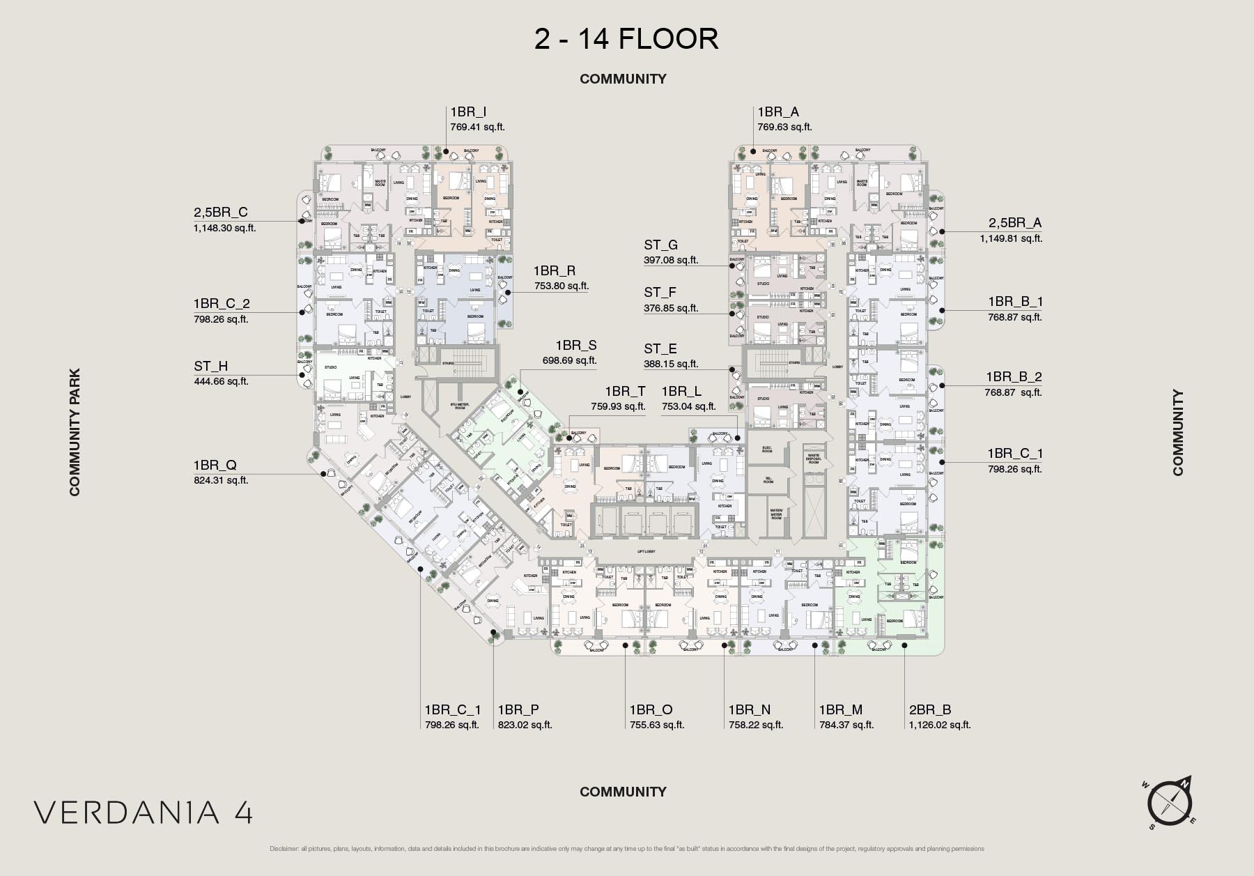The floor plans in the Verdania 4 vary to suit a diverse group of residents with apartments. The smaller units are designed with an efficient living-dining-sleep room. Units with single bed give further distance sometimes with living / dining space, kitchen, bathroom and view of balcony or window. The standard layouts of higher-bedroom houses have two bedrooms, one or more bathrooms, spacious living-dining room, and storage/utility area. In all plans there is concern regarding the daylight, airflow and the usable space outside through balconies or terrace.