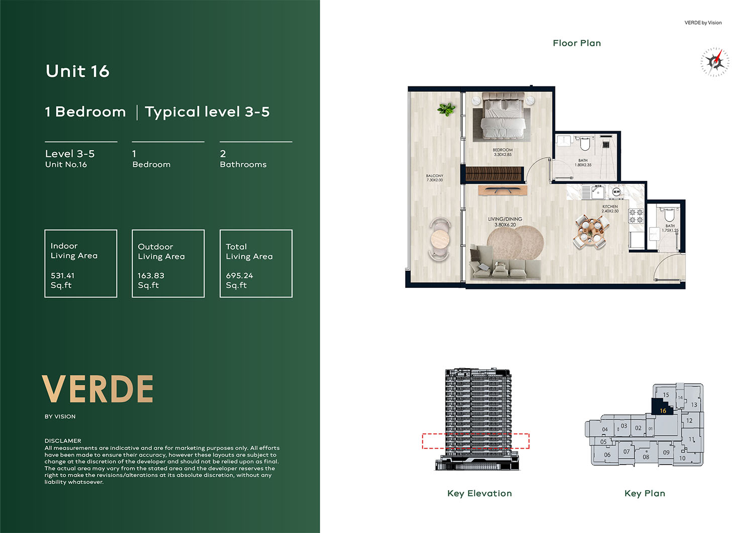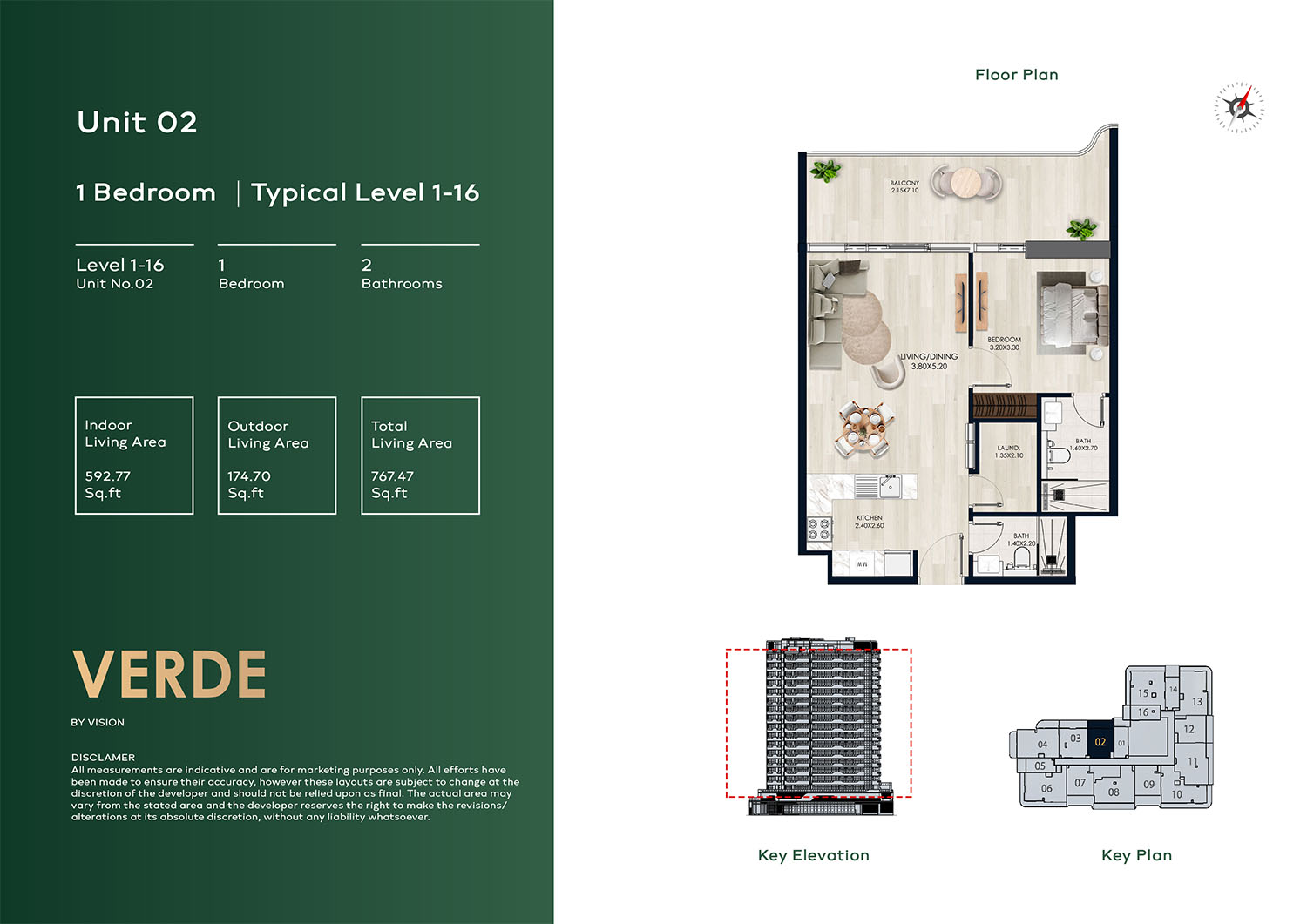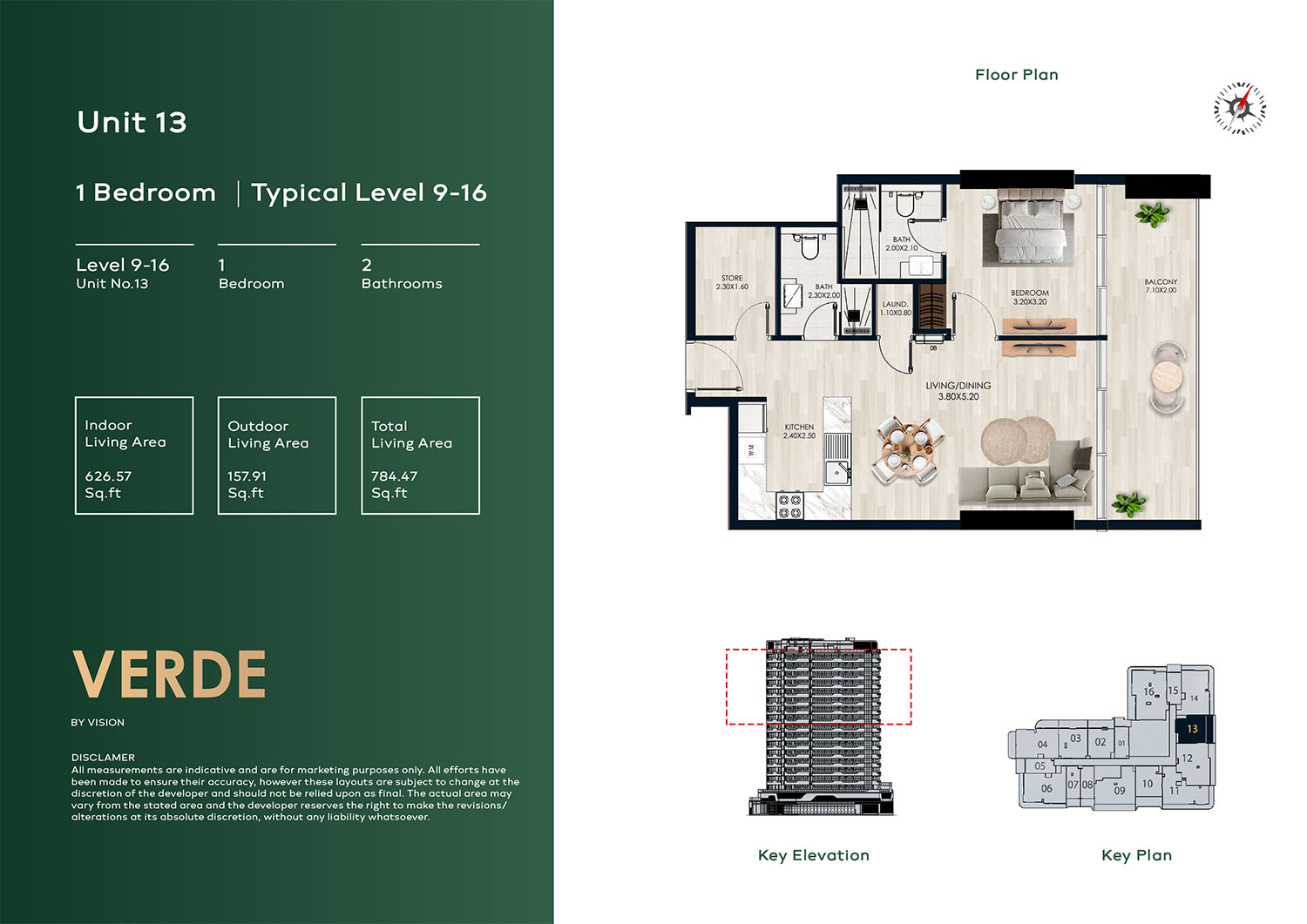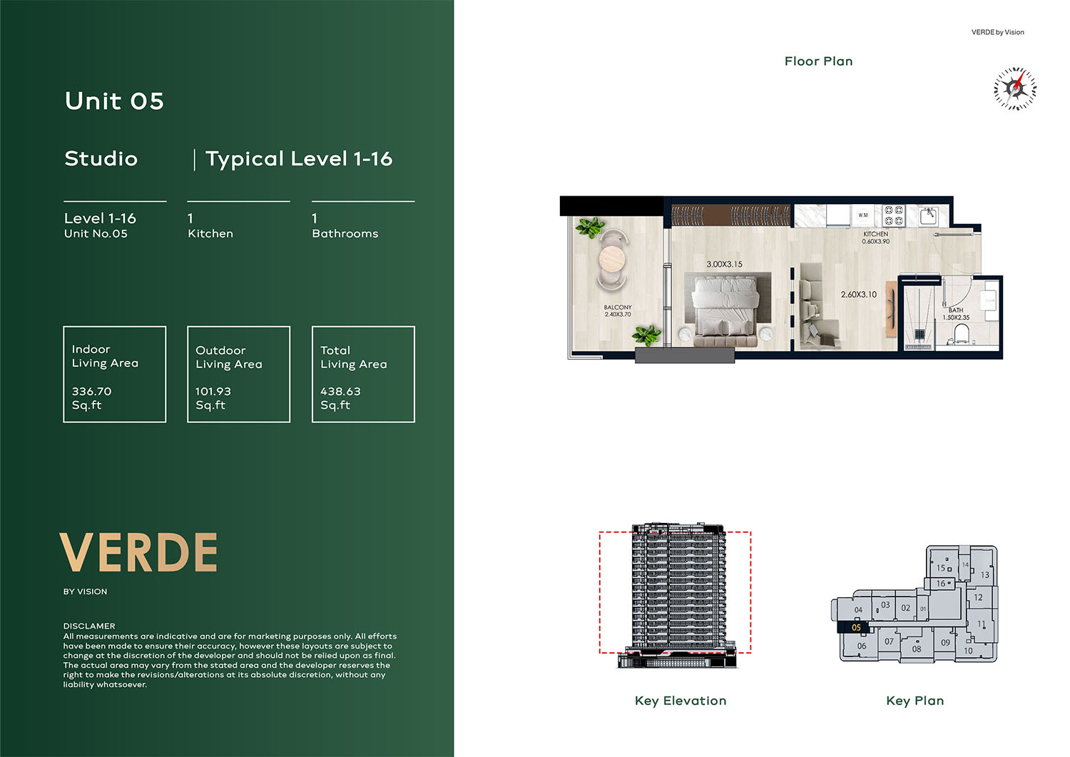 Comprising a distinctive choice of floor plans, the Verde Residences is a stylish and opulent sanctuary that offers studios, 1, 2, & 3-bedroom apartments. This 16-storey milestone features a total of 253 units, where every abode and space has been crafted with attention to the grandeur & grand spaces and dynamic lifestyles. Refined with premium finishes, every home offers higher ceilings, spacious and furnished ambience, and dynamic rooms for seamless accessibility. The large windows, private balconies, and fully fitted kitchens with modern appliances create spaces with stunning views and daily hassle-free living.