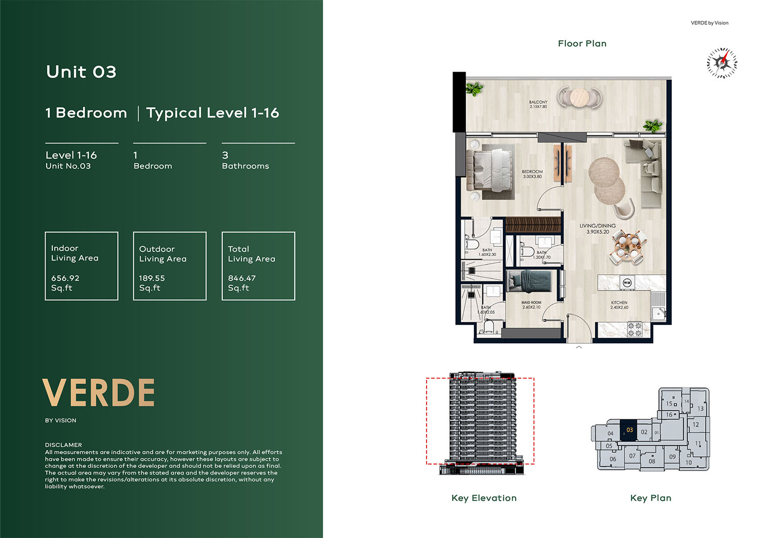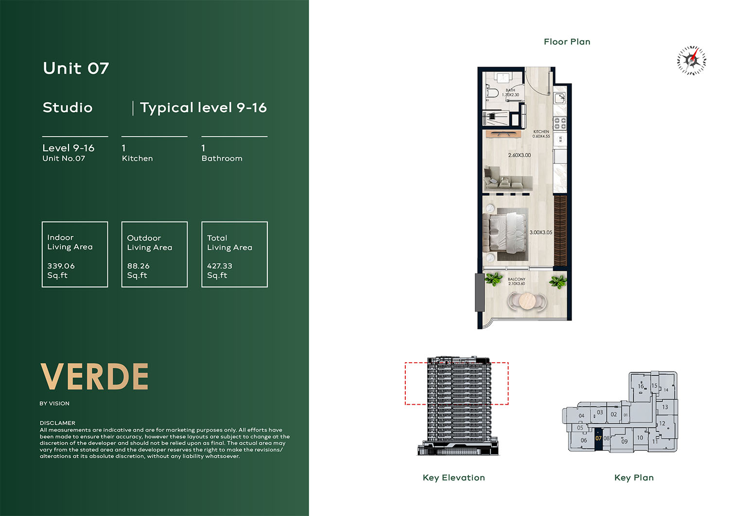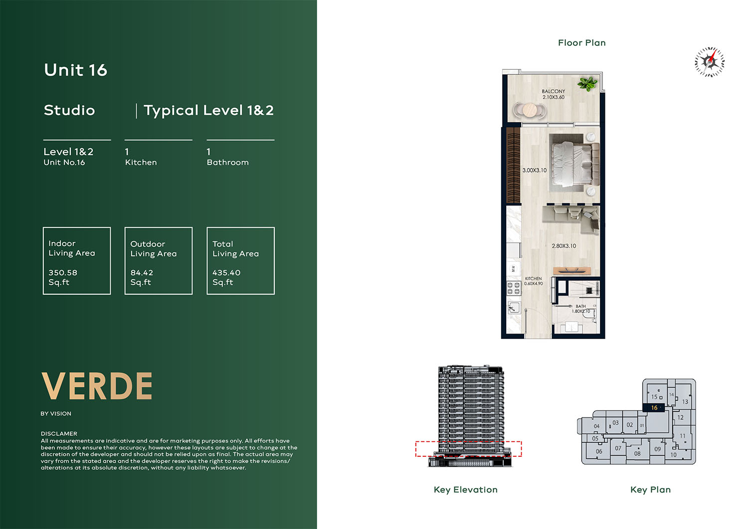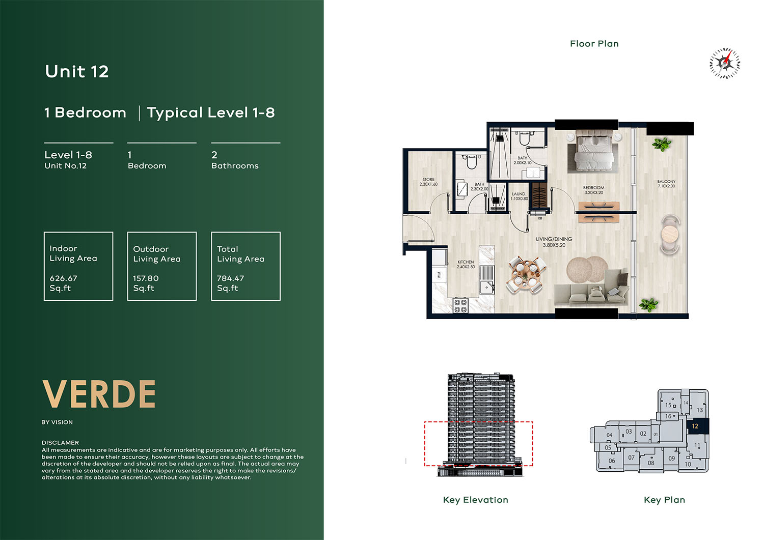 Comprising a distinctive choice of floor plans, the Verde Residences is a stylish and opulent sanctuary that offers studios, 1, 2, & 3-bedroom apartments. This 16-storey milestone features a total of 253 units, where every abode and space has been crafted with attention to the grandeur & grand spaces and dynamic lifestyles. Refined with premium finishes, every home offers higher ceilings, spacious and furnished ambience, and dynamic rooms for seamless accessibility. The large windows, private balconies, and fully fitted kitchens with modern appliances create spaces with stunning views and daily hassle-free living.