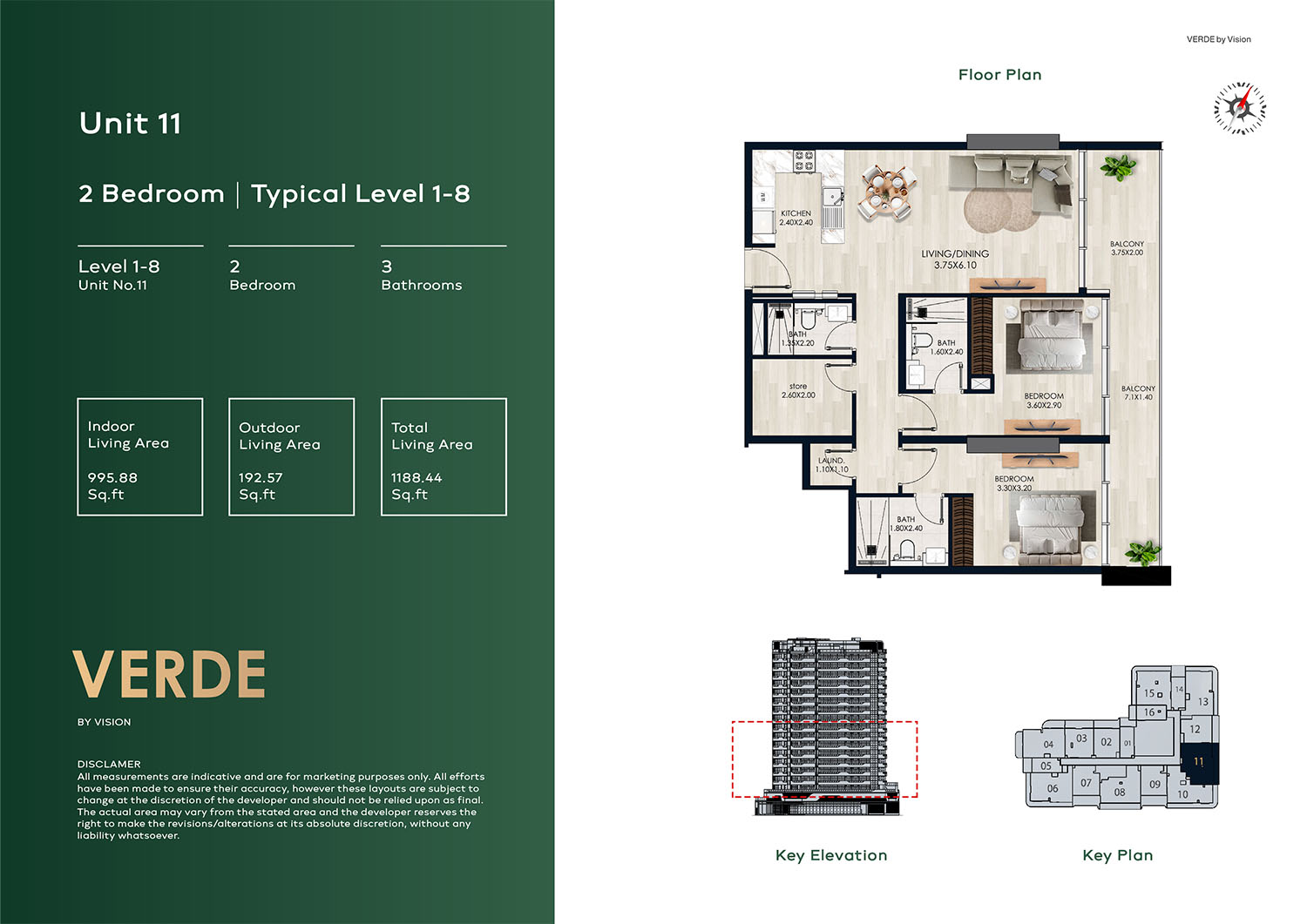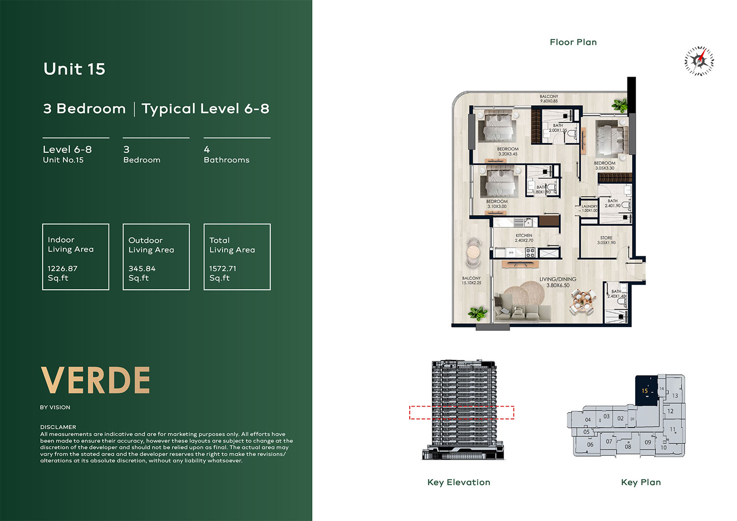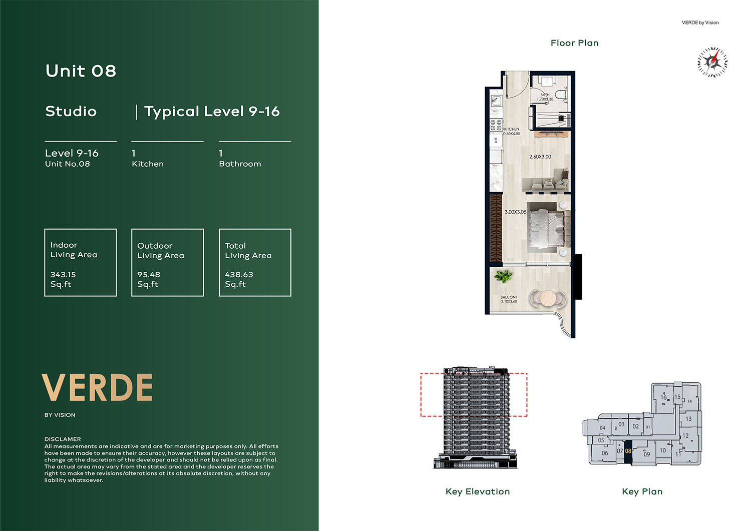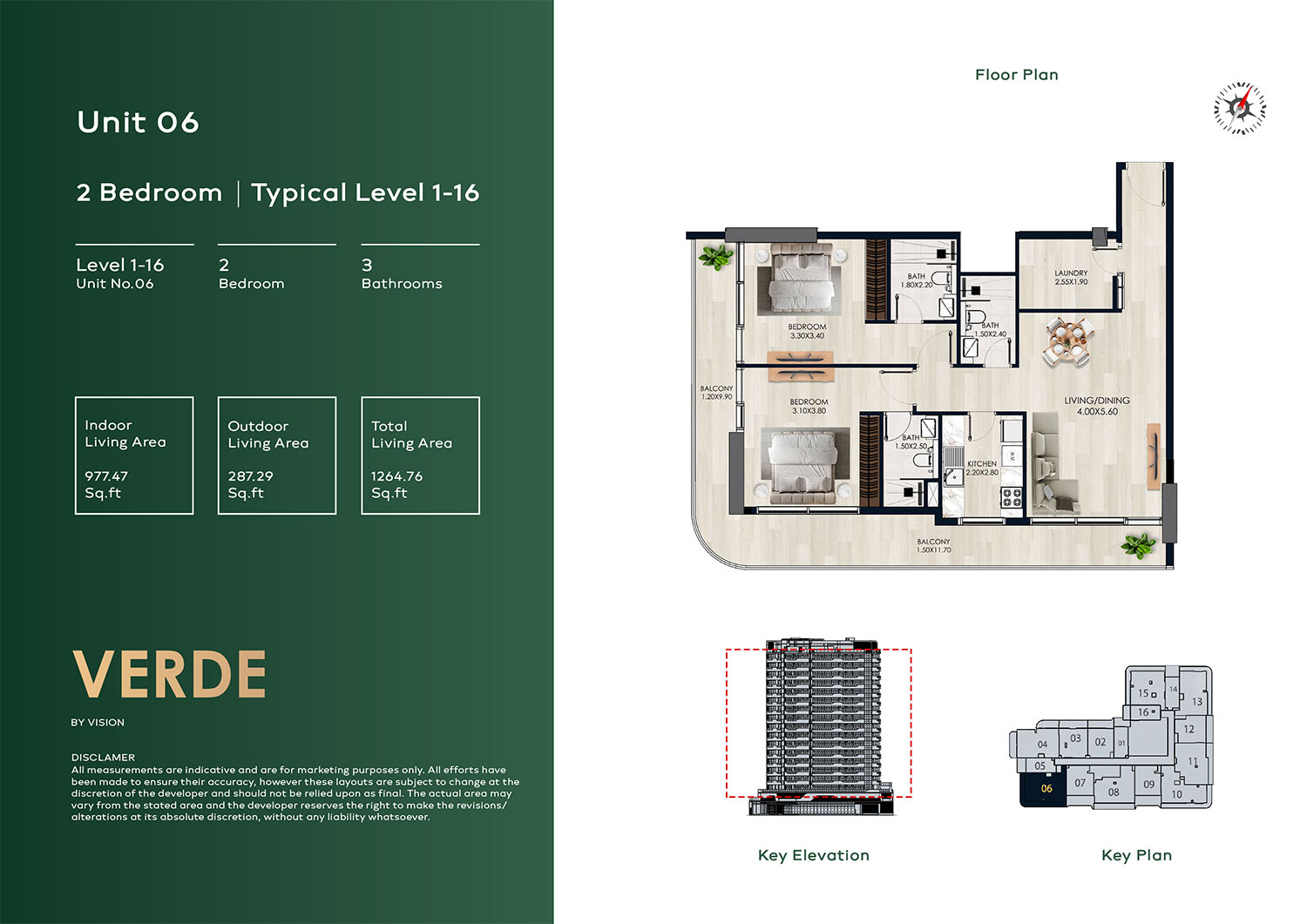 Comprising a distinctive choice of floor plans, the Verde Residences is a stylish and opulent sanctuary that offers studios, 1, 2, & 3-bedroom apartments. This 16-storey milestone features a total of 253 units, where every abode and space has been crafted with attention to the grandeur & grand spaces and dynamic lifestyles. Refined with premium finishes, every home offers higher ceilings, spacious and furnished ambience, and dynamic rooms for seamless accessibility. The large windows, private balconies, and fully fitted kitchens with modern appliances create spaces with stunning views and daily hassle-free living.
