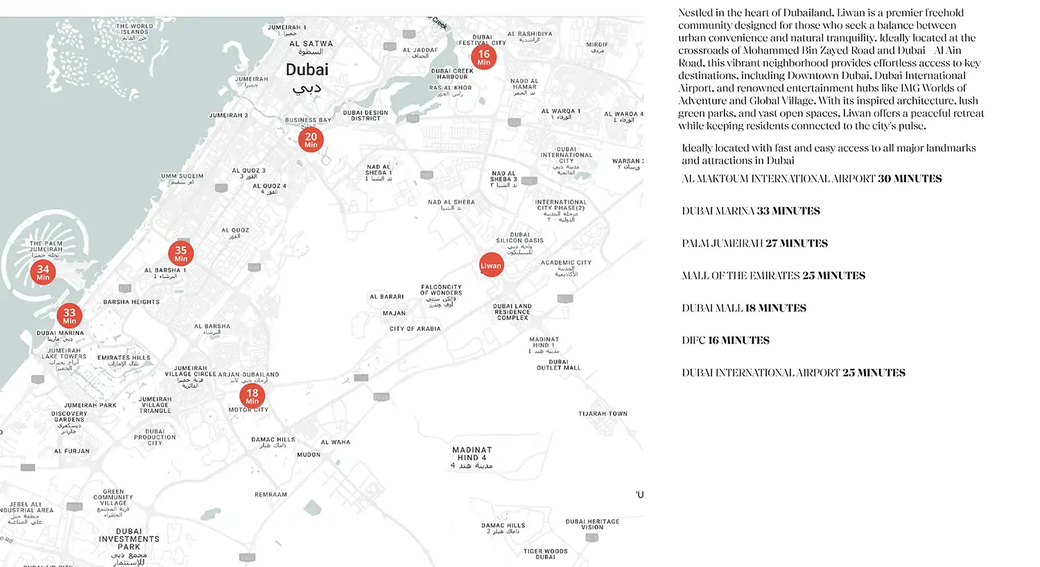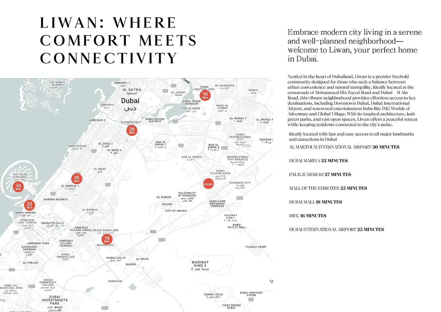 - Strategically located in Liwan with seamless connectivity to major Dubai highways.