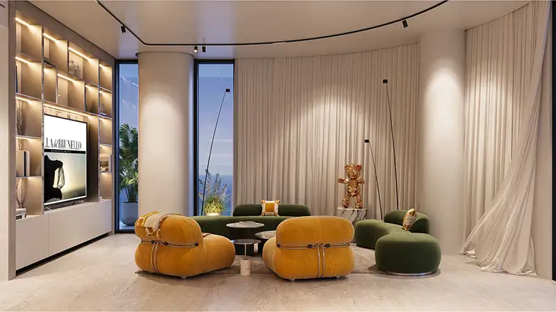 Entering the homes, it is a representation of the perfect beachfront boutique living that can include well-considered plans resulting in a comfortable and well-finished interior that is modern and sophisticated. The scheme will consist of apartments and duplexes, with the aim of focusing on the views, privacy and cross-ventilation. The interior combines high ceilings, floor-to-ceiling ratios, custom work of joineries and high quality fixtures reminisces of a coastal beauty, such as stone and wood, with neutral colours and sensorial surfaces to form a relaxing base to day-to-day life. Every home has its own private terrace and balcony, which are considered an extension of the home and the outside into the inside, and enable the homeowner to enjoy the sunrise and skyline views at night.