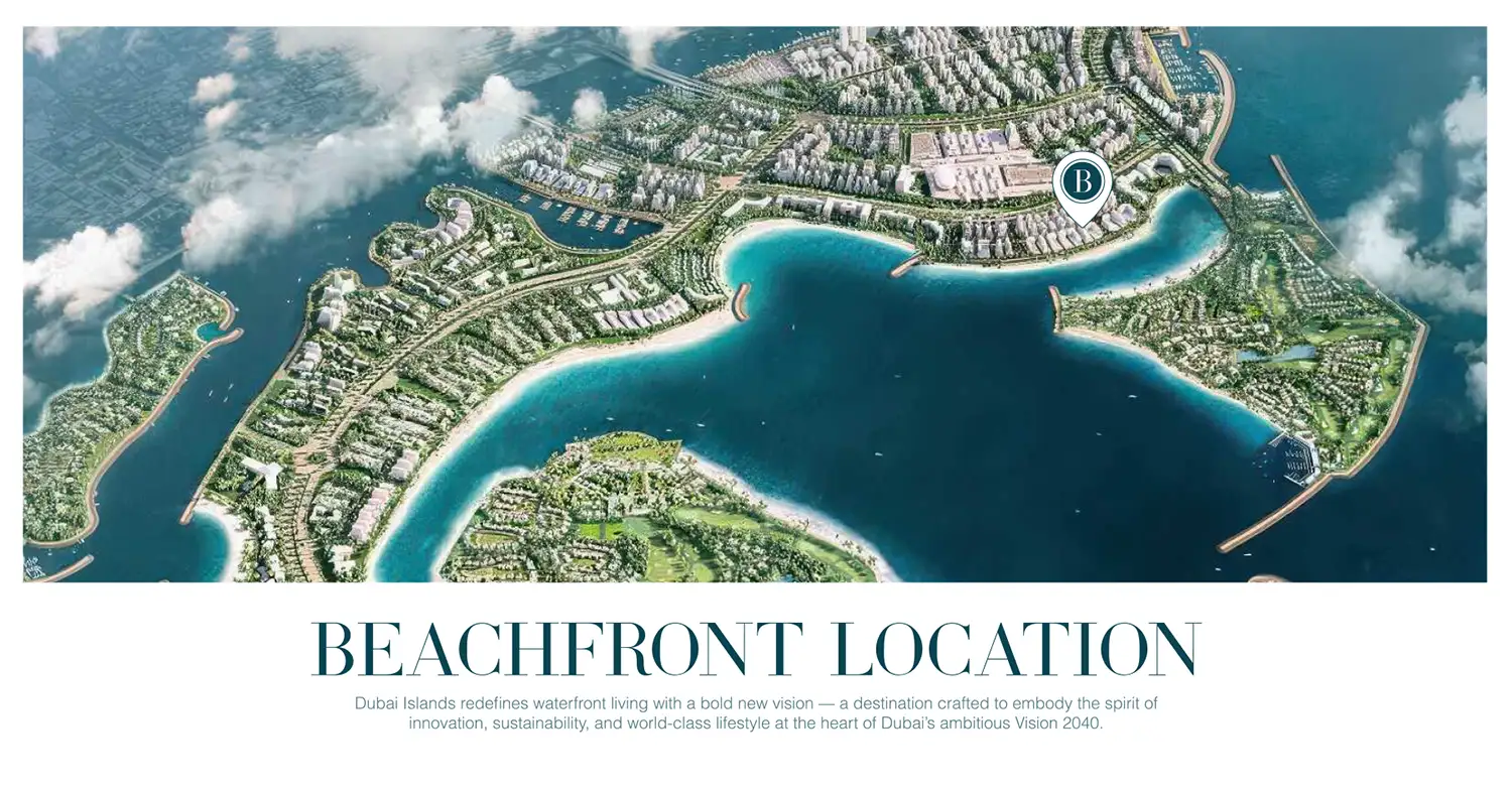 - Boutique waterfront residence on Dubai Islands inspired by refined Mediterranean architecture.