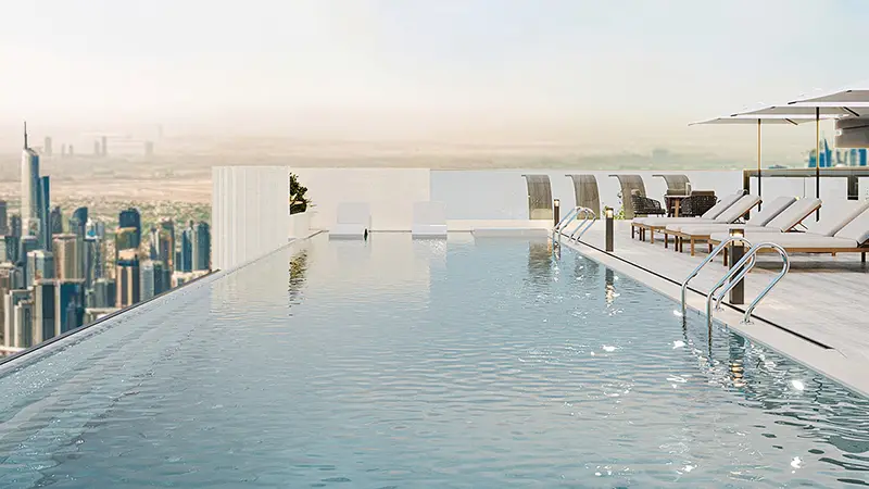 - Premium amenities include infinity pool, rooftop open-air theater, gym, paddle court, and jogging track.