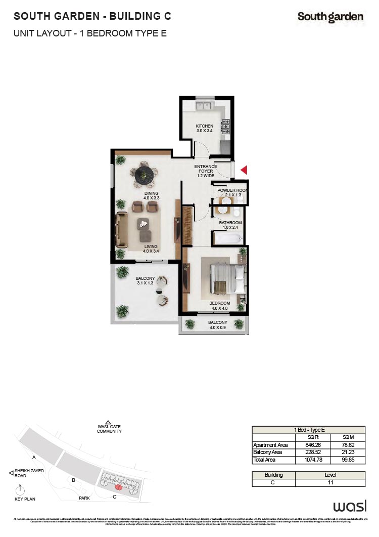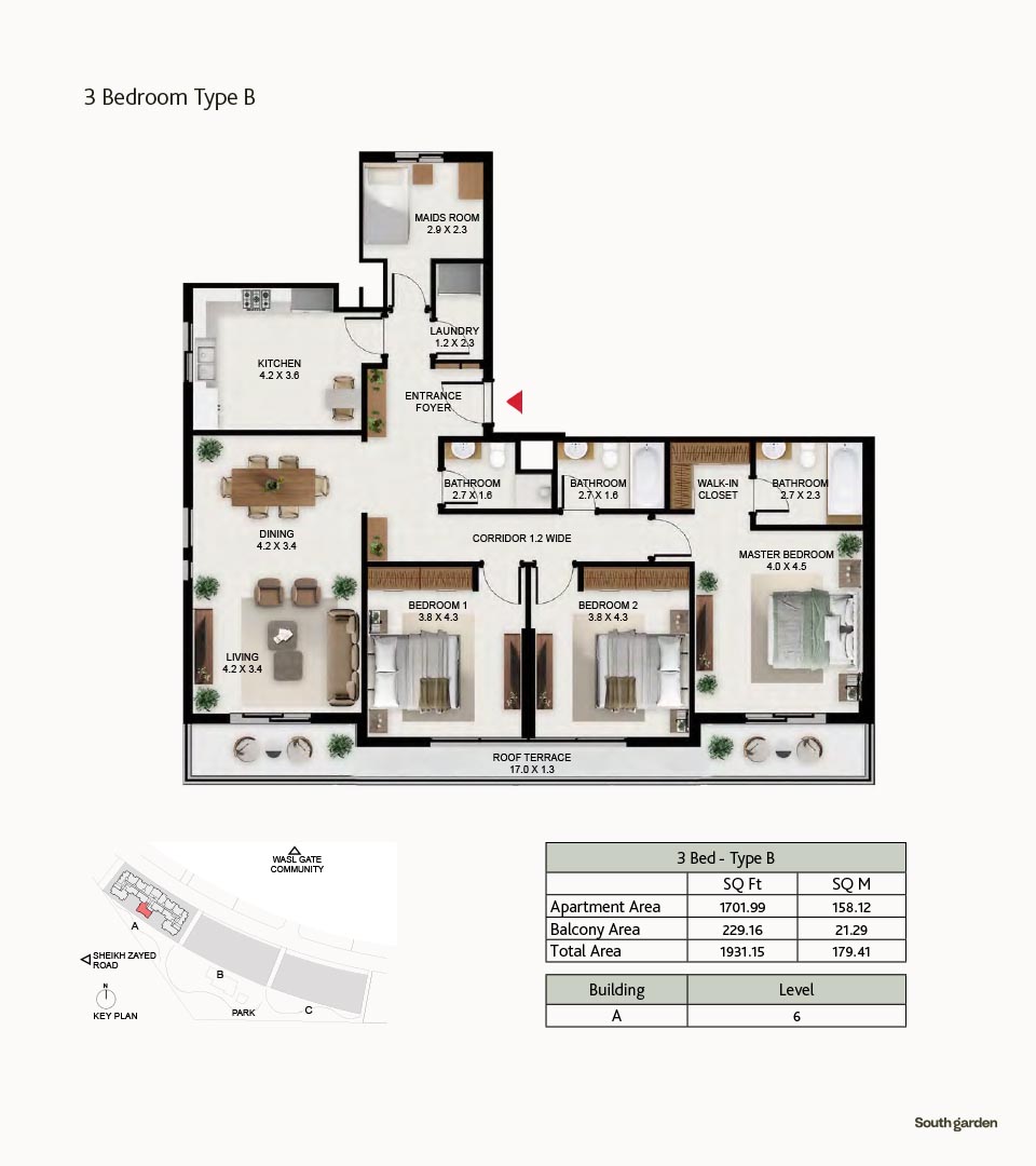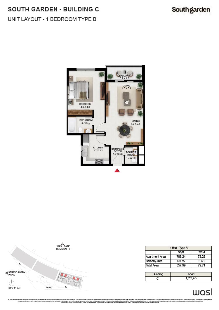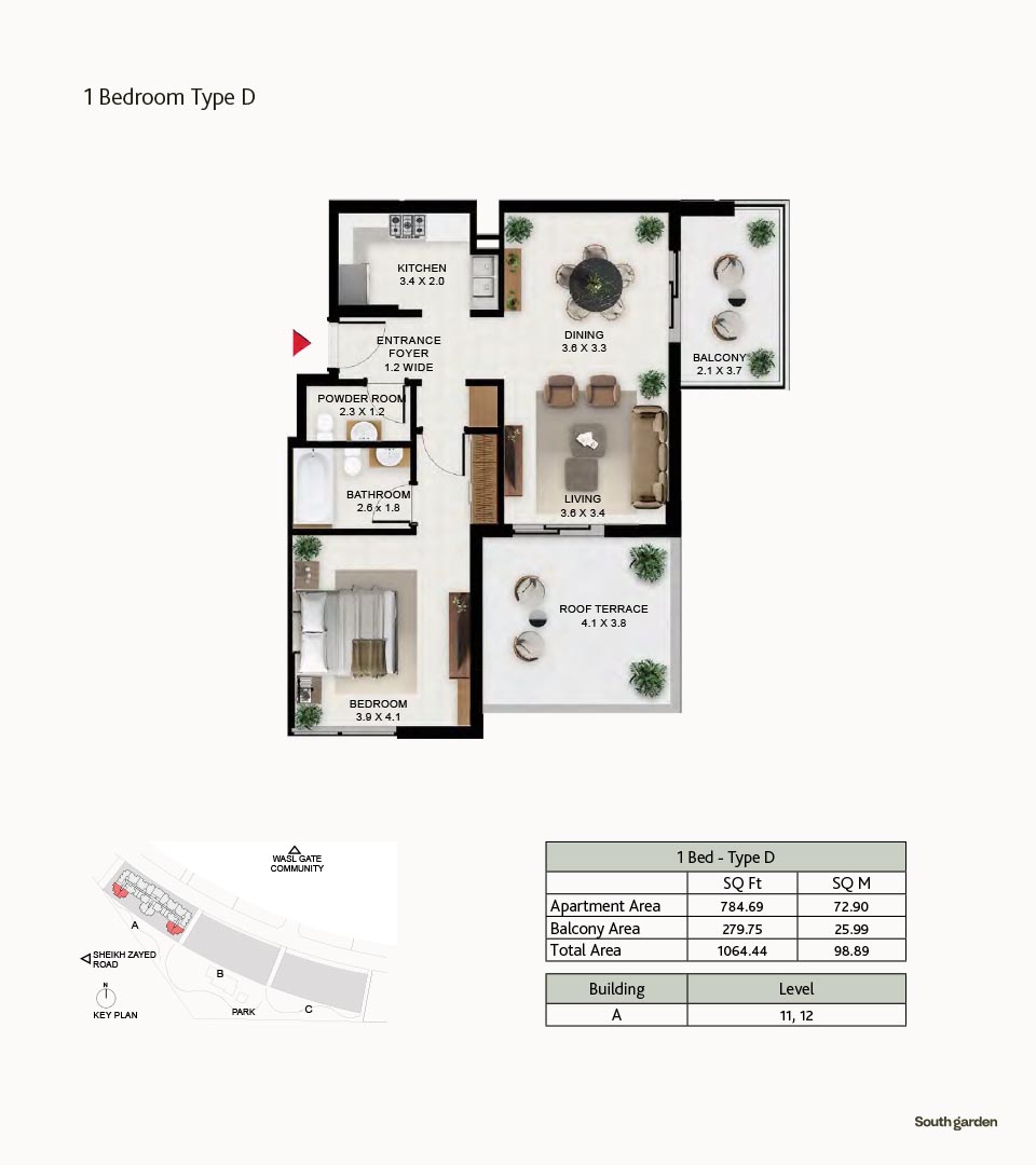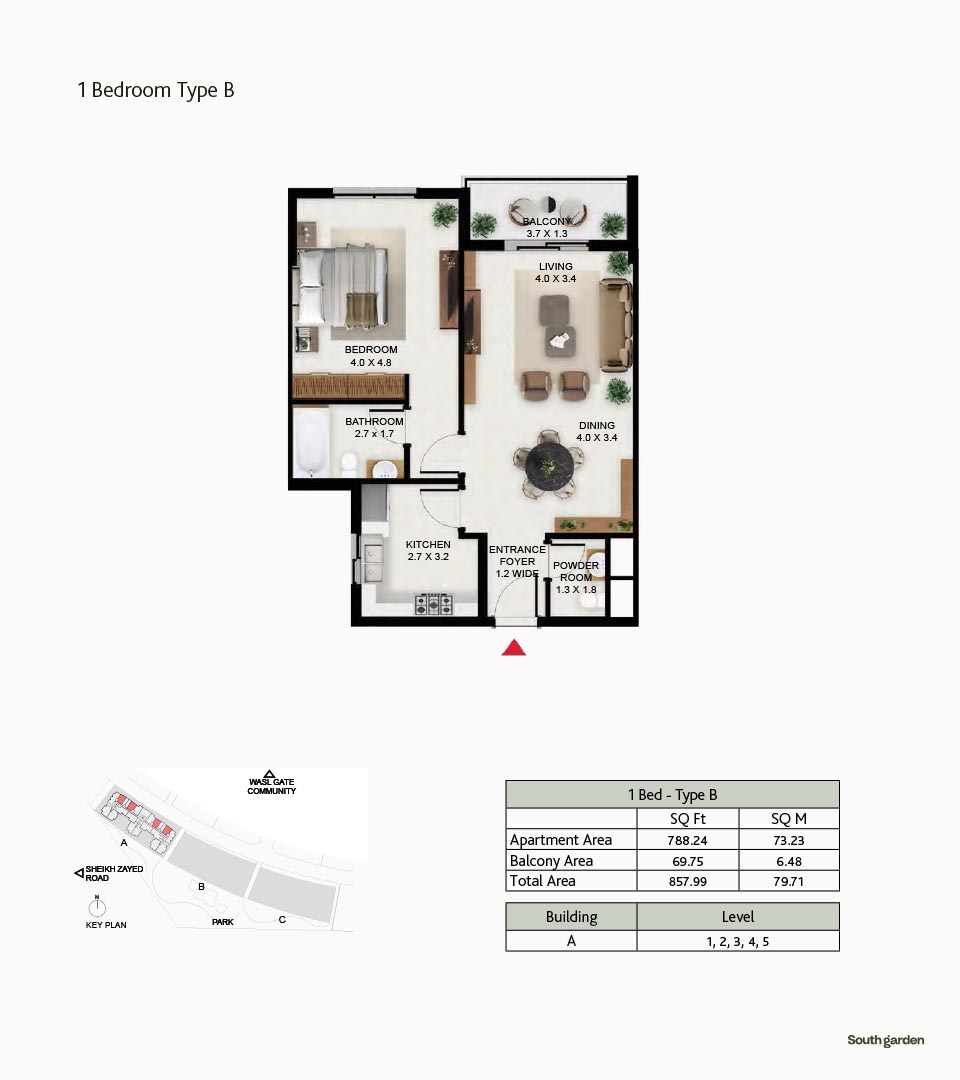South Garden at Wasl Gate is a refined and massive development, offering floor plans of carefully constructed lavish studios, 1, 2 and 3-bedroom apartments. There are 3 buildings encompassing the refined interiors, including the stunning neutral theme of spacious layouts, rich furnishings and fully-curated sustainable rooms with large windows and sun-lit spaces. All rooms are featuring the porcelain flooring, paint finish on walls and false ceiling with moisture-resistant paint.
